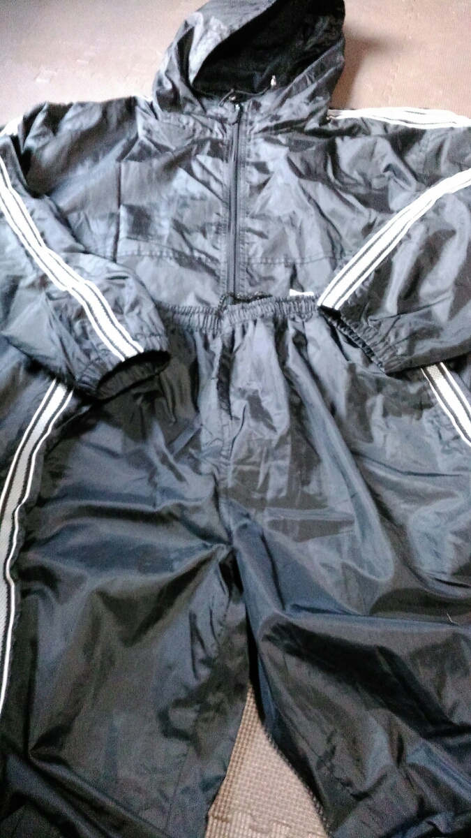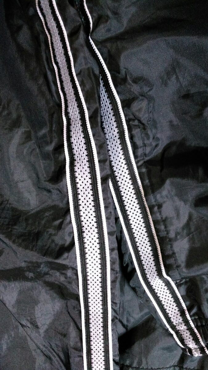 サイズ M ~L 身幅63cm. 着丈72cm. ウエストゴム紐付き、股下77cm. フード、裾ゴム