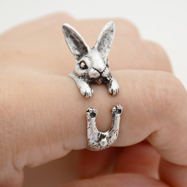 かわいいウサギちゃんがゆびにまとわりつくアクセサリー。