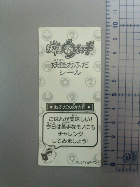 妖怪ウォッチ 妖怪おふだシール ひも爺 ごはんのおふだ です。