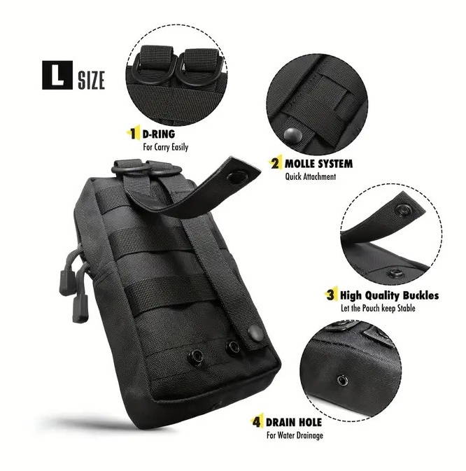 新品 ブラック タクティカル ミリタリーポーチ サバゲー モールシステム キャンプ アウトドア ウエストバッグ ベルト送料無料