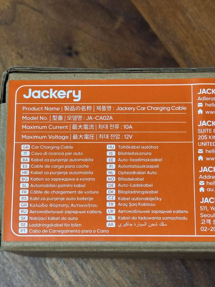 Jackery JA-CA02A車載シガーソケット充電ケーブルです。