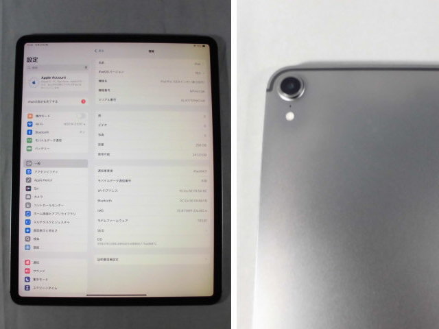 第3世代で、色はスペースグレイ、液晶は12.9インチ、容量は256GBです。