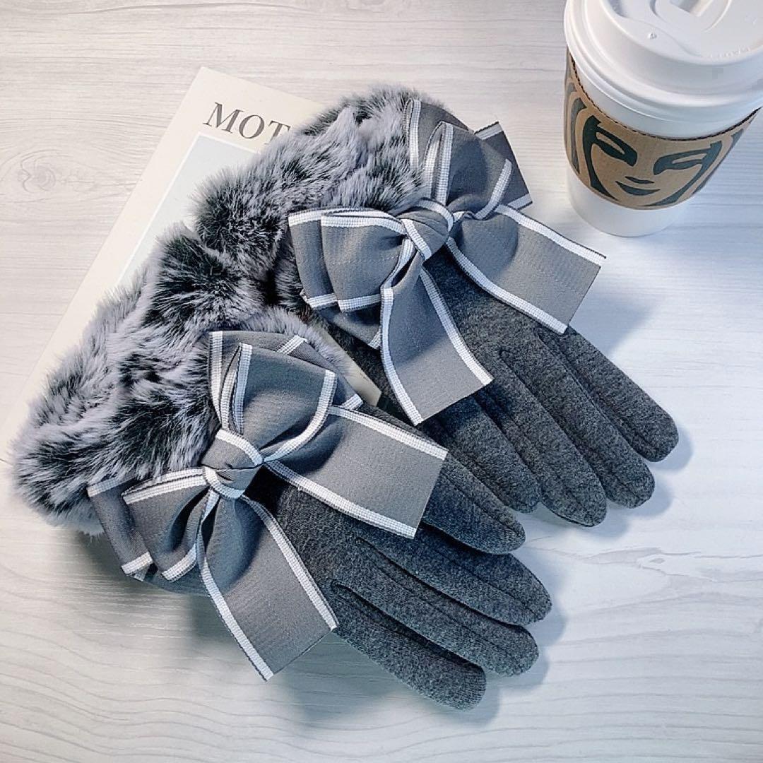 親指と人差し指の先は別生地で、手袋を着けたままスマホの操作が可能。裏は裏起毛のボア素材で保温性抜群。ファー付きで通学や通勤の寒い日でも快適。これからの時期、彼氏とのデートやイルミネーション、屋外のイベントも防寒だけでなく、手の甲にあしらわれたビッグリボンで手元からも可愛さが溢れ出し、いつも頭を悩ますコーディネートに一役買ってくれるお助けアイテム。