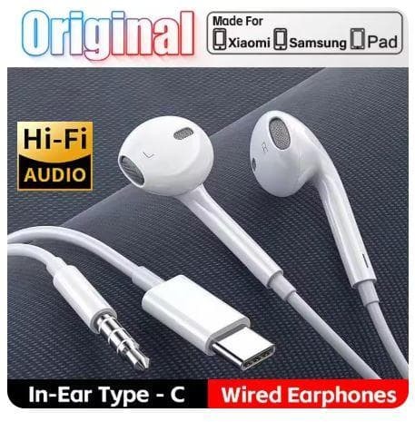 送料無料 未使用品 ホワイト オリジナル USB Type-C インイヤー 有線イヤホン Hi-Fi クリア通話 音量ボタン マイク付き  ヘッドセット ヘッドホン