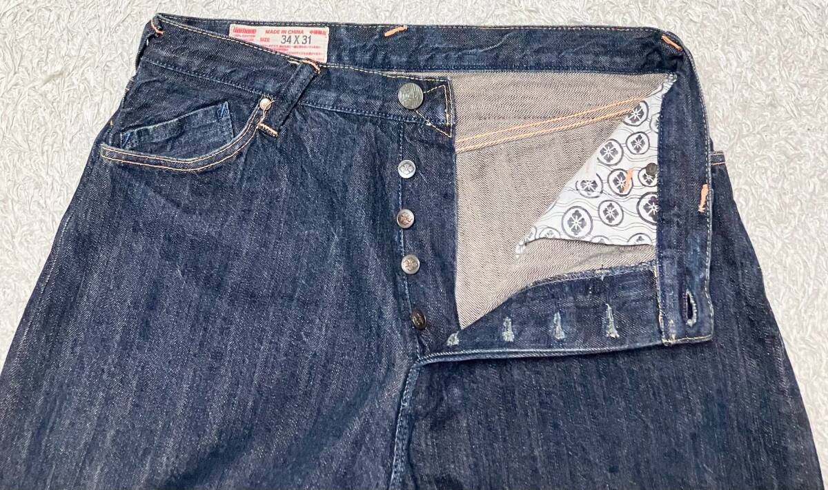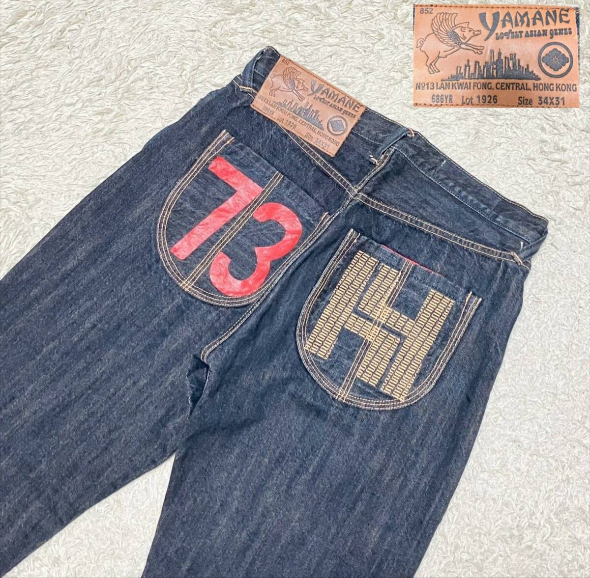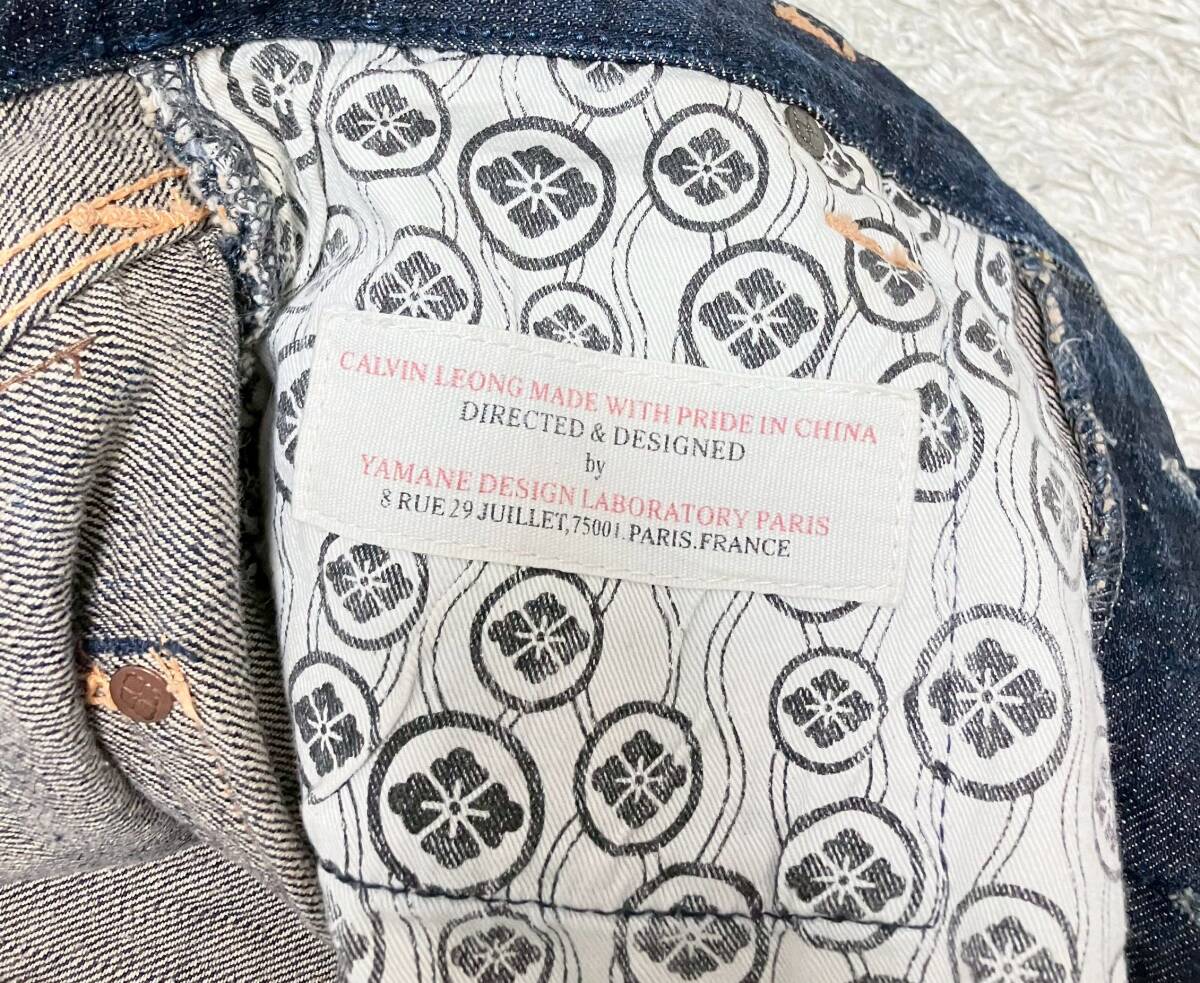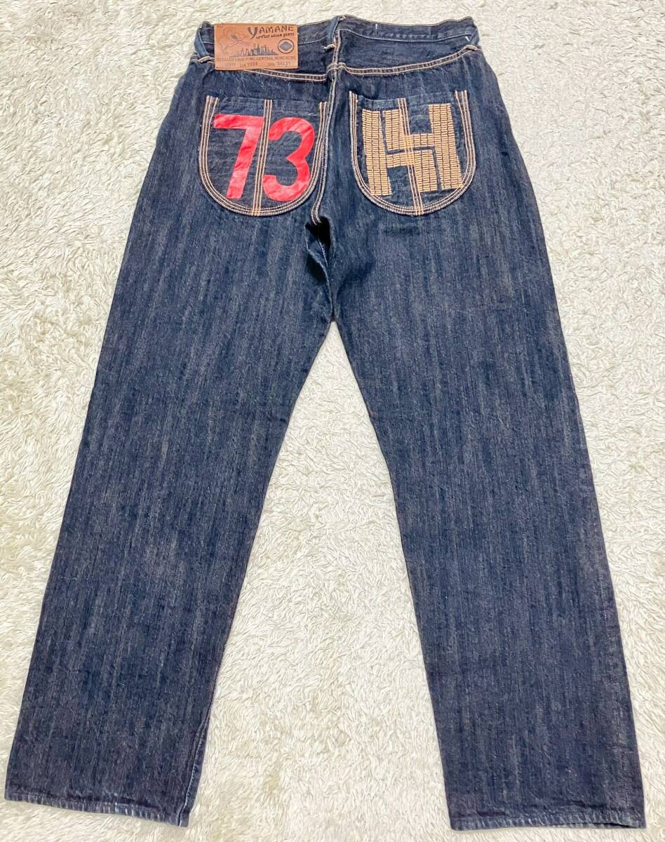【ラメ耳★ヒップ刺繍】W34 YAMANE 濃紺 セルビッチデニムパンツ ジーンズ●ヤマネ (10)