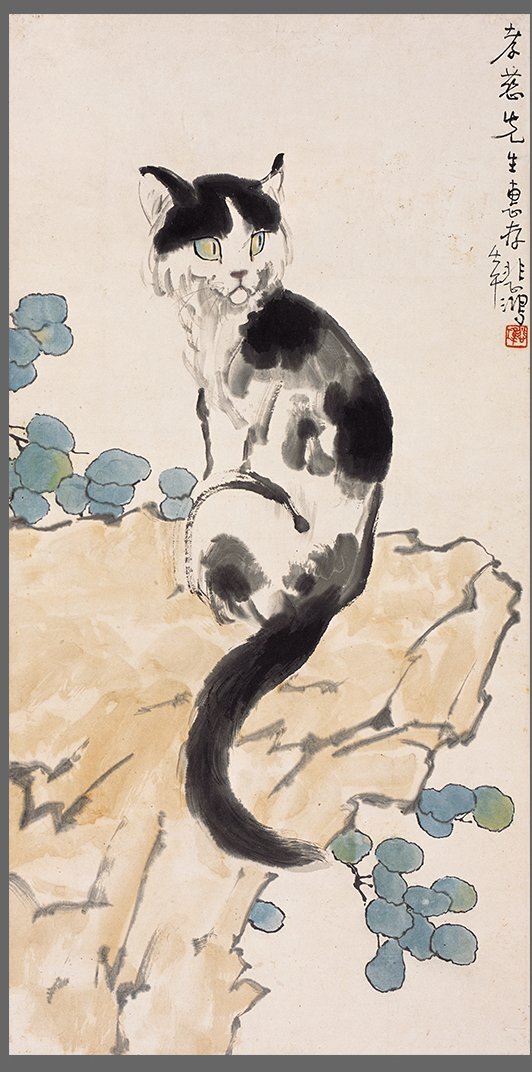 サイズ:猫図宣紙画芯未表装-45 X 80 cm