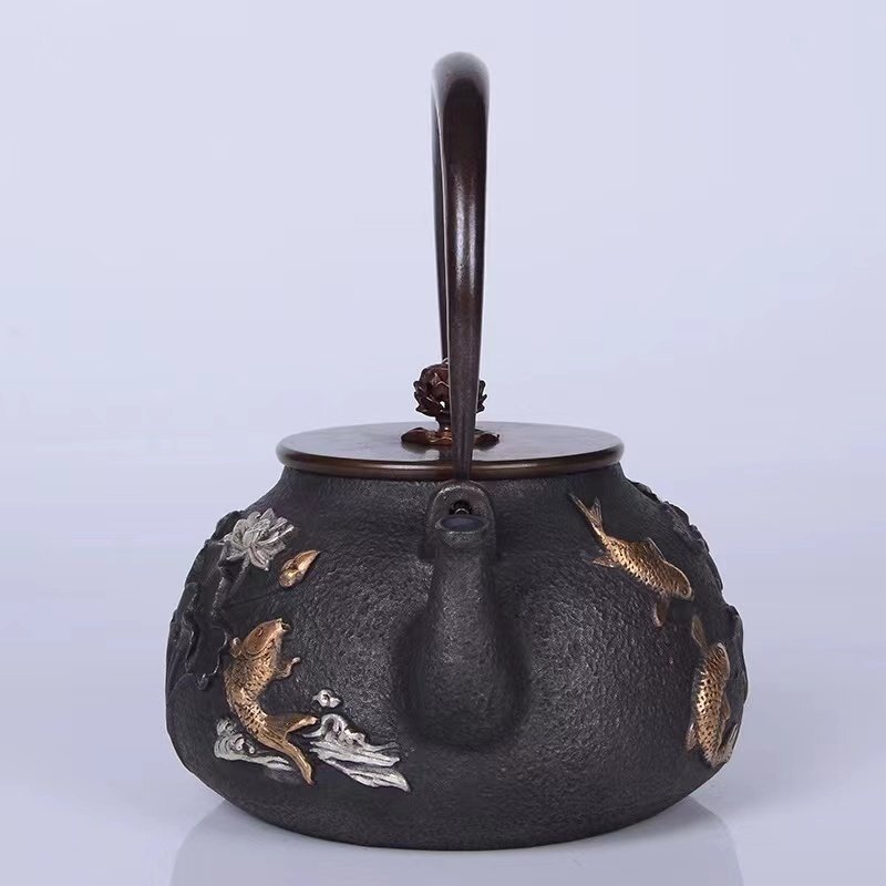 新品★銅製蓋 銅製取っ手 提梁壺★茶道具 手作 細工 ガス、電気コンロ、炭火 対応 鉄やかん★定番