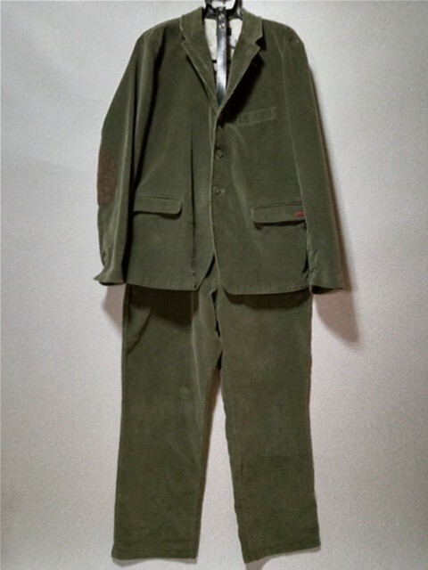 有難うございます。ジャケットサイズL 肩幅約50cm,身幅約59cm,着丈約75cm,袖丈約66.5cm パンツサイズW36 ウエスト平置き約46cm,レングス約74cm,裾幅約23.5cmです。F7 パタゴニア カーキ コーデュロイ スポークンワードジャケット&パンツ セットアップです。状態は概ね画像通りになります。古着になりますので全体的に多少の使用感ございます。ジャケットにて右袖、ボタン、左ポケットにうすよごれ。その他著しく目立つようなダメージ等ございませんがヴィンテージ古着等お好きな方、ご理解頂ける方にお願い致します。ジャケット、パンツ共別で入手したのですが奇跡的に同年、同色、同生地のセットアップになります。変化球のパタゴニアお探しの方に。ゆうパック送料無料ですのでよろしくお願い致します。