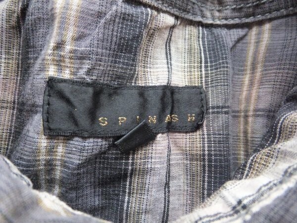SPINASH スピナッシュ メンズ チェック ダブルフラップポケット 長袖シャツ M グレー黒茶 です。