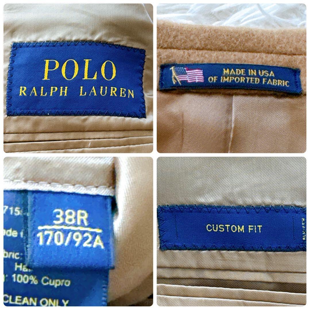 POLO RALPH LAUREN ポロラルフローレン ジャケット ブレザー 金ボタン キャメル100% 高級素材 貴重 希少 CUSTOM FIT テーラード 3B シングル ネイビー以外 ブラウン ベージュ アメトラ クラシック トラッド メンズ 38R 170 Mサイズ相当 美品 高品質 ブランド 正規品
