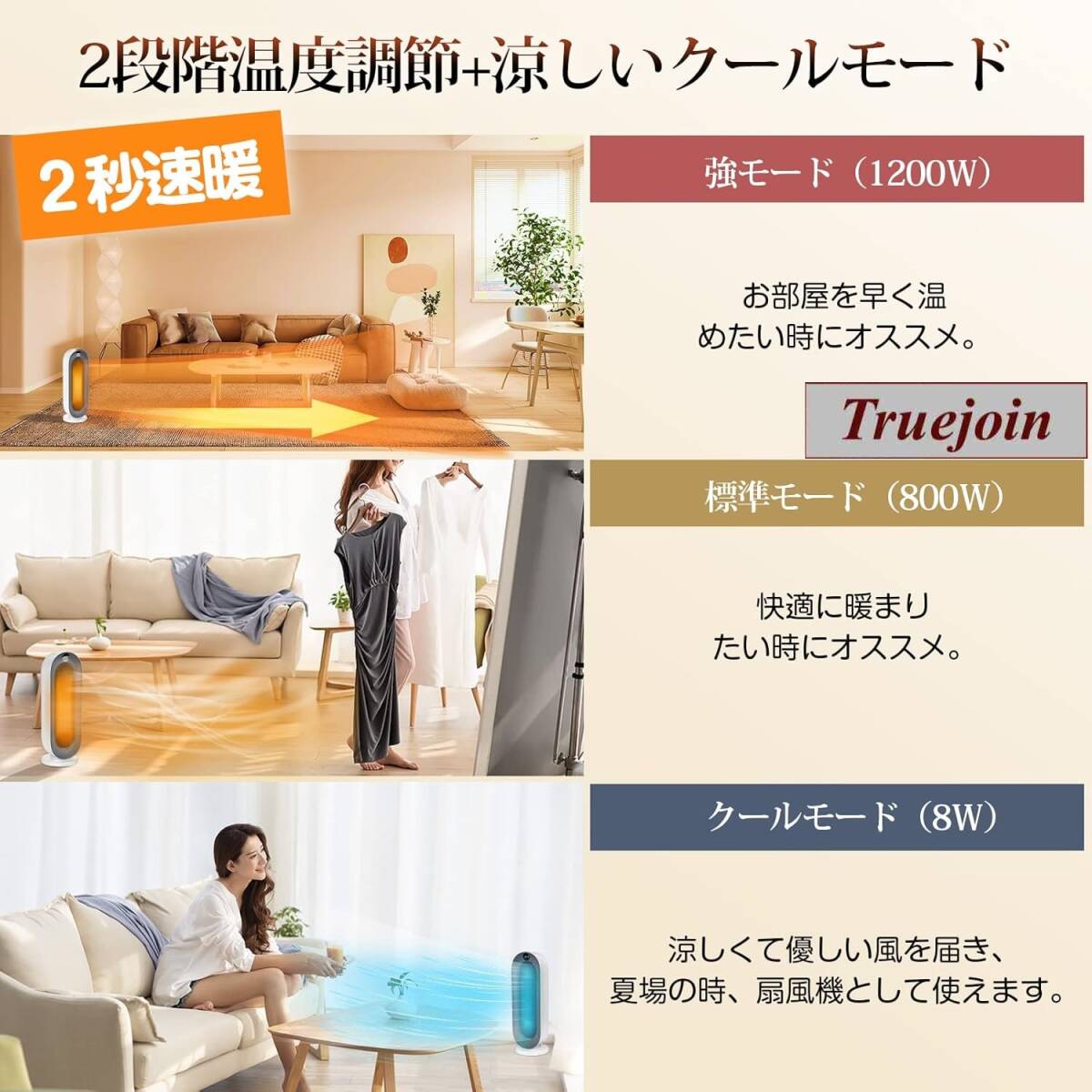 * 送風・弱温風・強温風の3モード切替が可能な新型ヒーターです。