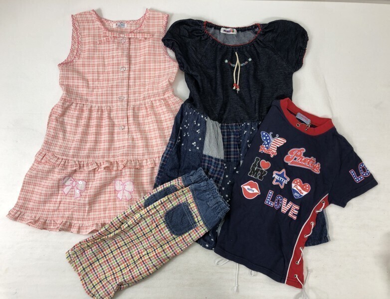 キッズ 子供服 女の子 サイズ130 ワンピース Tシャツ パンツ 4点セット まとめ売り 卸し フリマ 福袋 です。