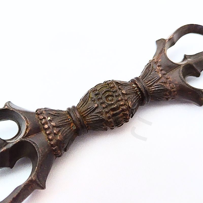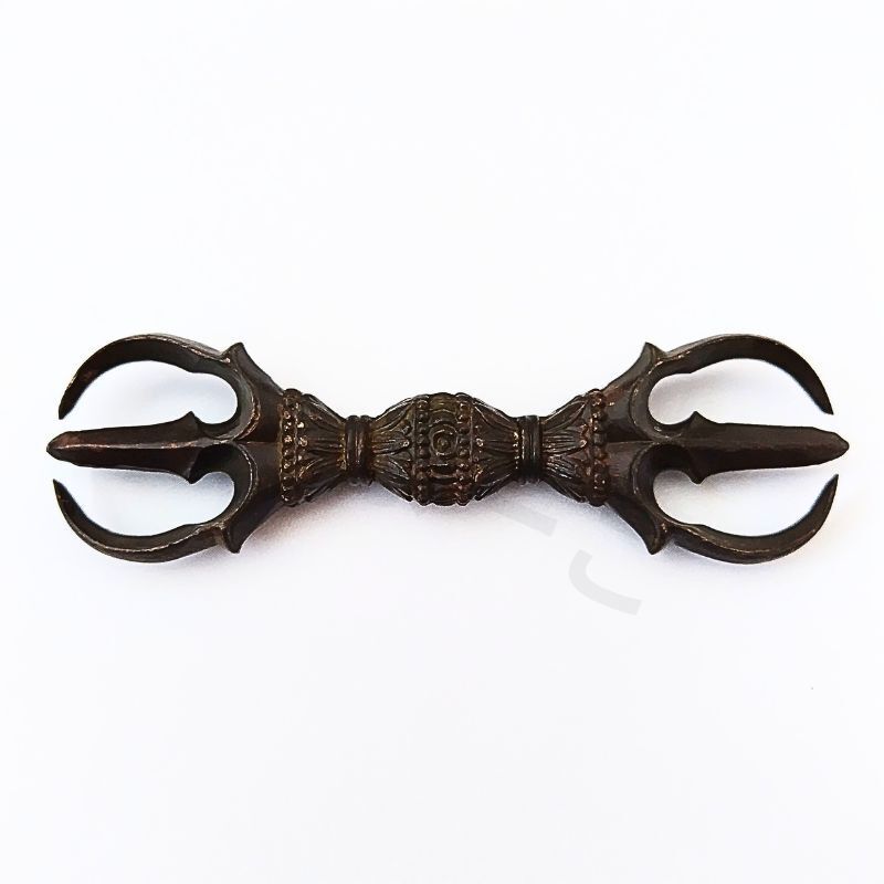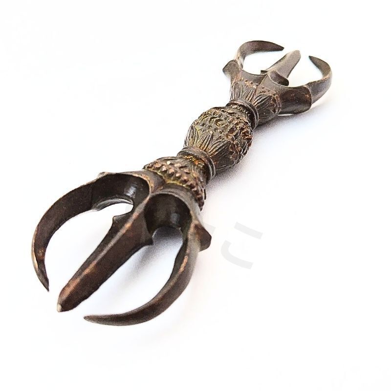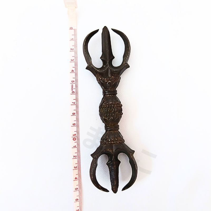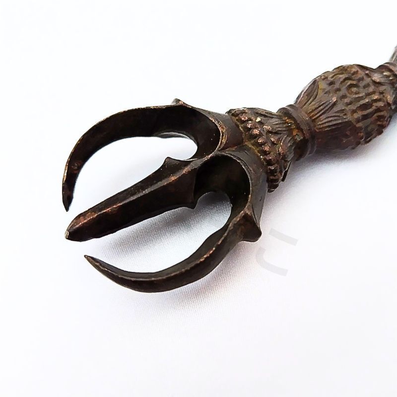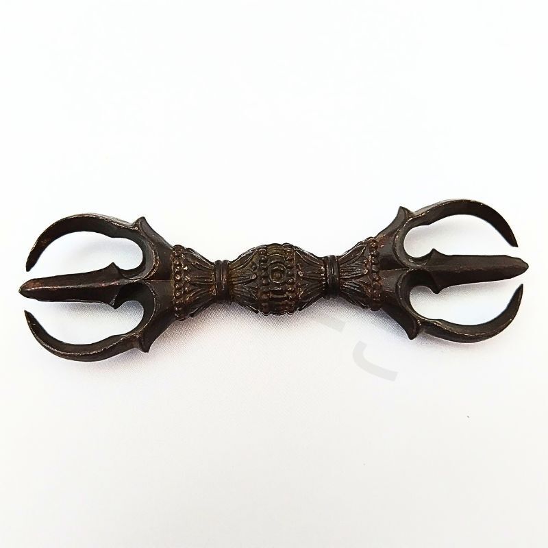密教法具 金剛杵 魔除け お守り 三鈷杵 ヴァジュラ 全長約15㎝ インド神話 風水 三法 仏教 煩悩 修法 美術品 置物 仏像 インテリア雑貨