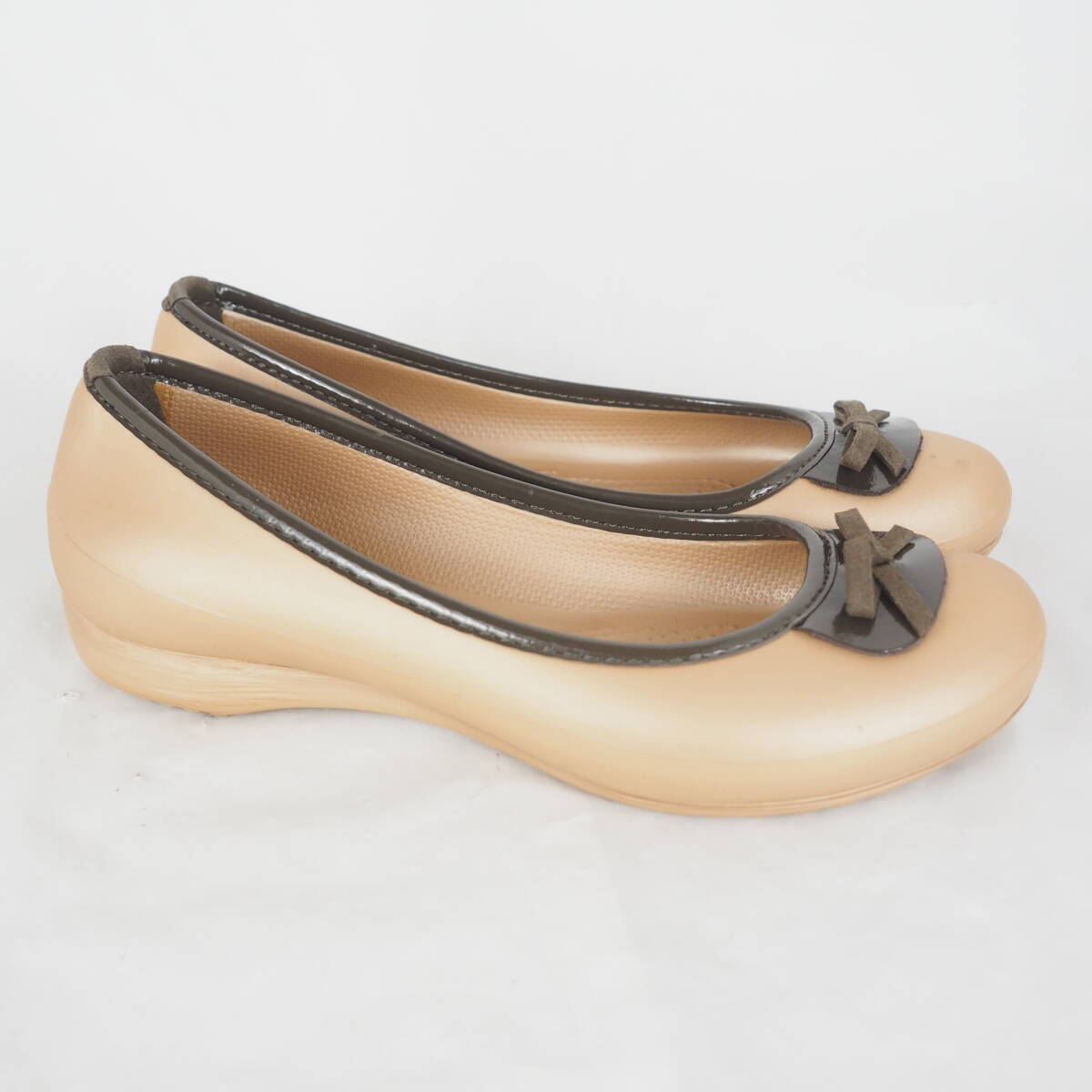 | ページをご覧いただきありがとうございます^^靴、ブーツを中心に出品しております。 ベージュ×ブラウンのリボン付きデザイン。 軽くて歩きやすく、普段使いにぴったり♪ ☆商品詳細☆