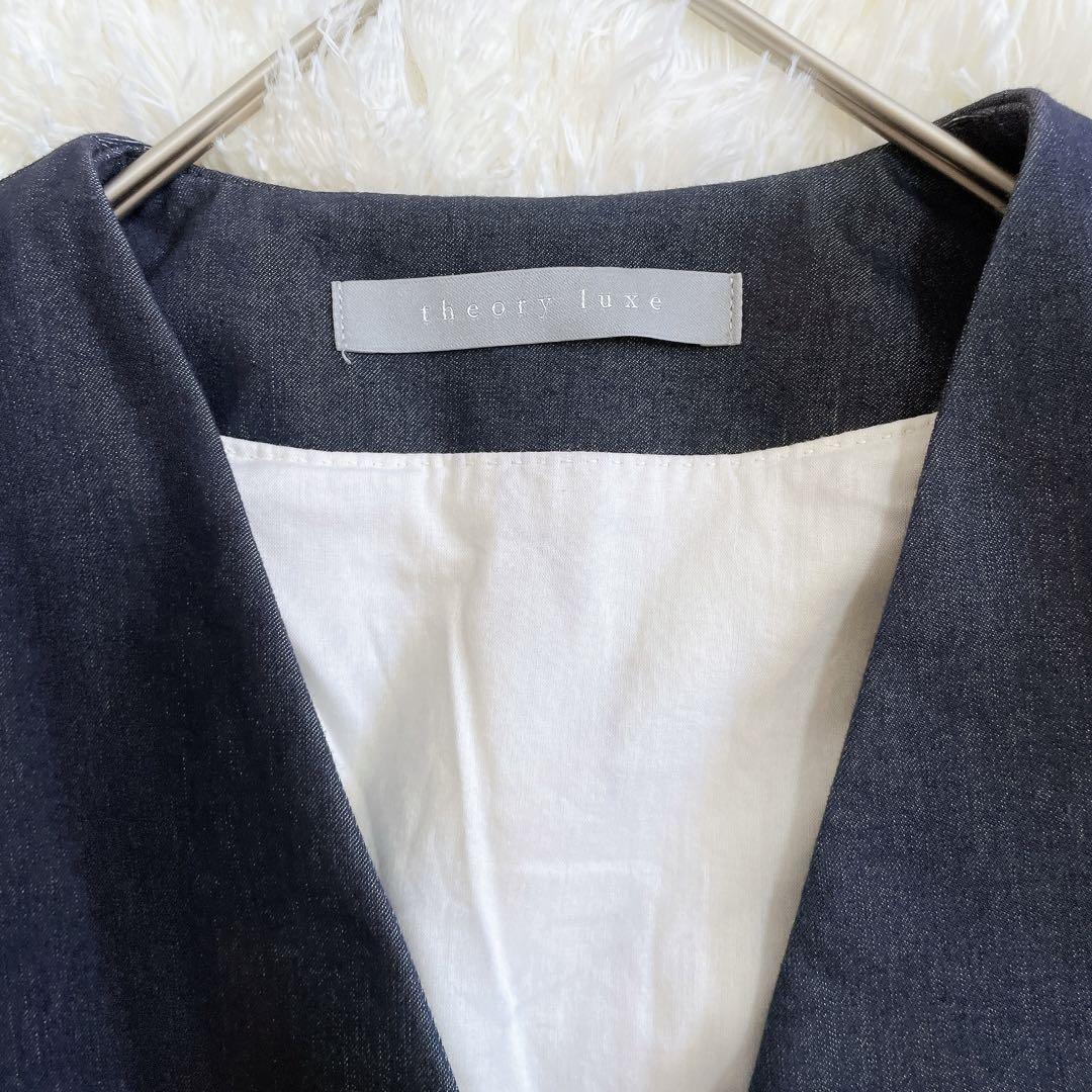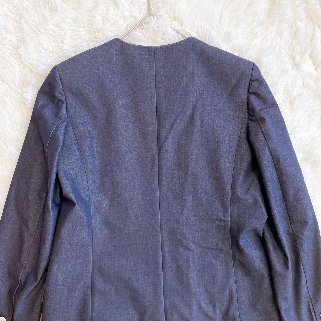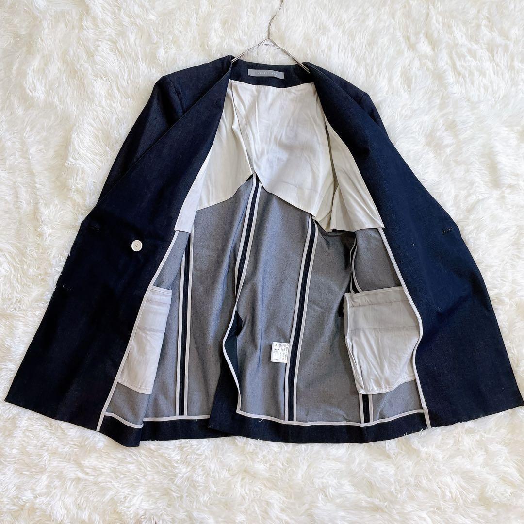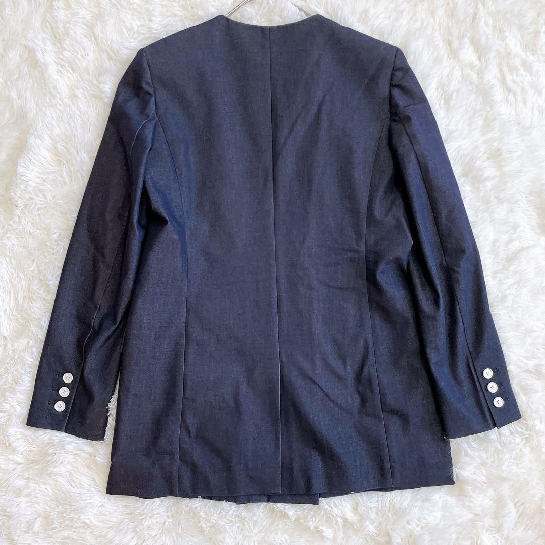 セオリーリュクス Theoryluxe ジャケット ノーカラー ダブルボタン ネイビー 紺 デニムブルー テーラード スーツ フォーマル オフィスカジュアル ビジネス 上品 綺麗め シンプル レディース 38サイズ Mサイズ 春秋 正規品
