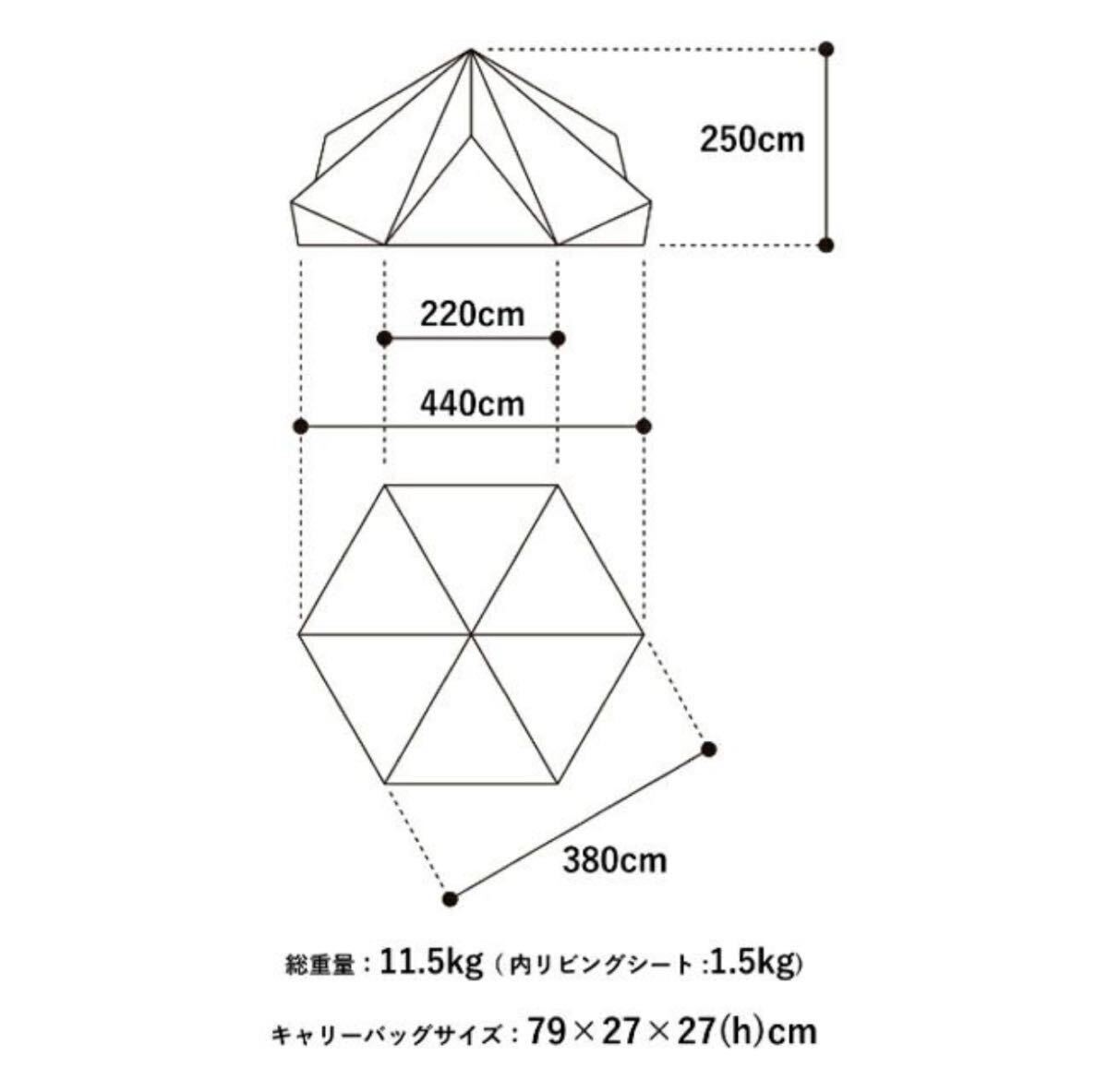 詳細:エクステンションフレームで生まれる広い空間と、大胆に開口するパネルで、ワンポールのデメリットを解決したミドルサイズシェルター。