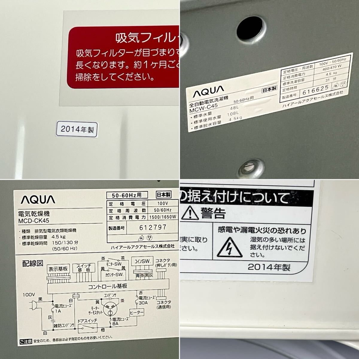 ★☆業務用 AQUA/アクア コインランドリー 洗濯機: MCW-C45/乾燥機:MCD-CK45専用架台付 金額設定可能