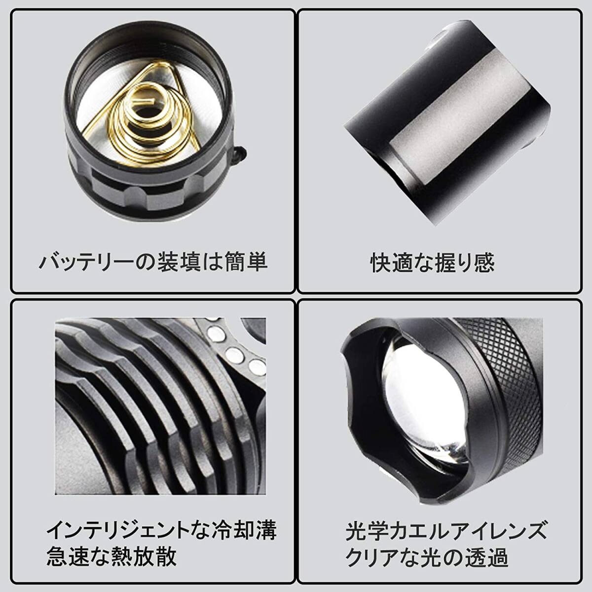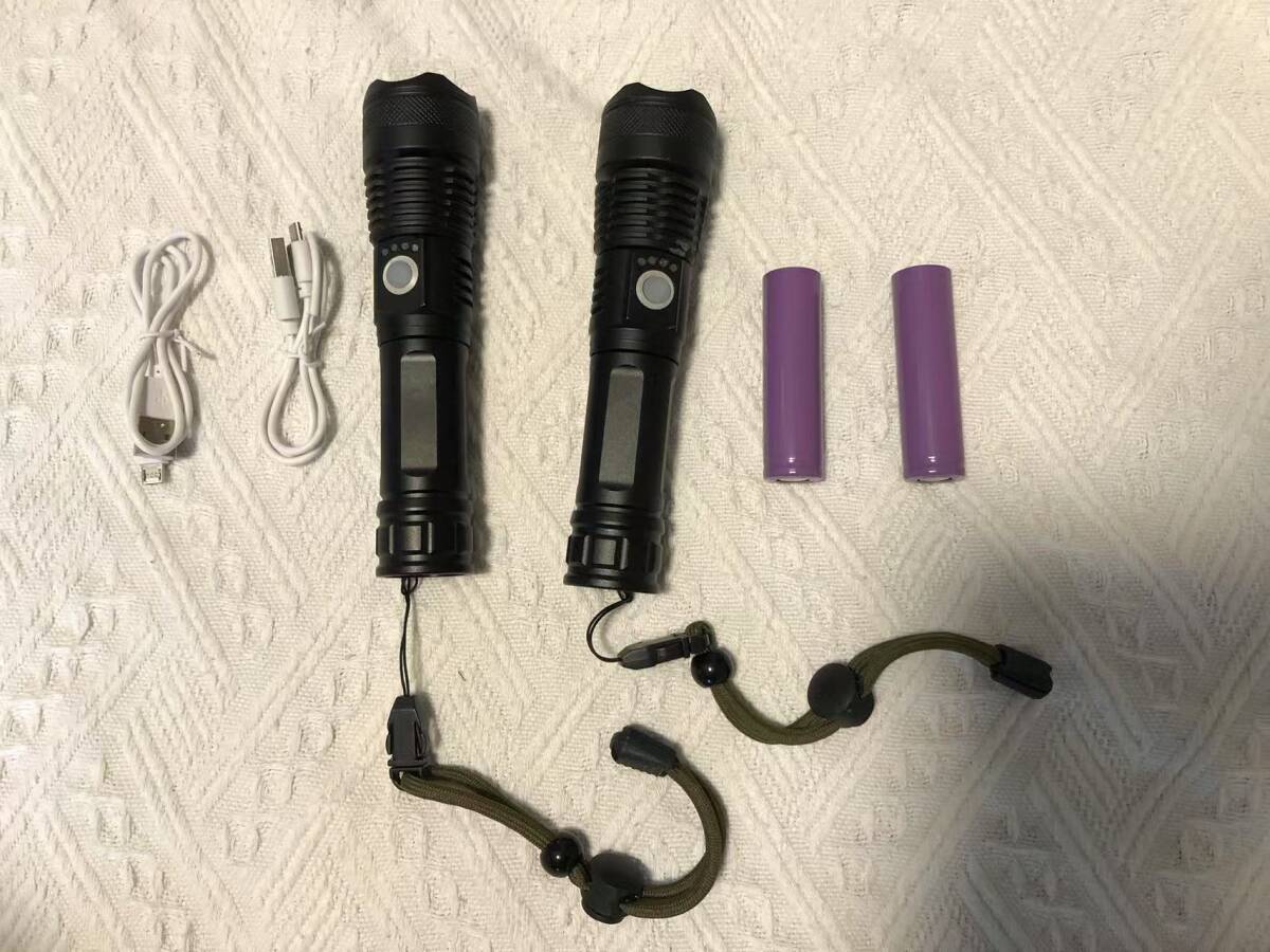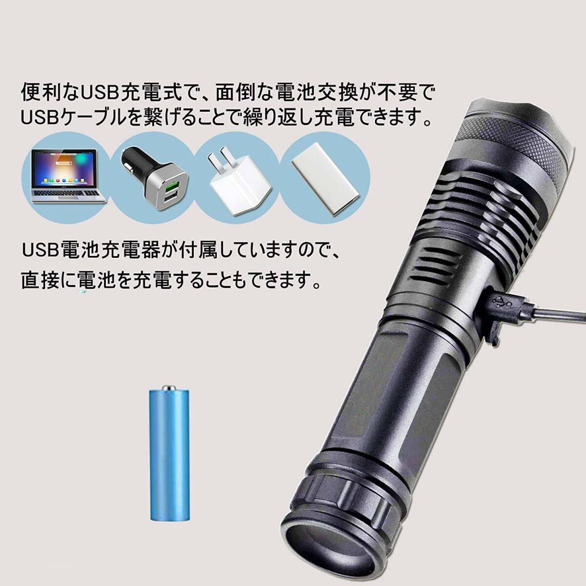 【2点セット】懐中電灯 充電式 LEDライト 超高輝度 合金製 5モード調光 18650付き