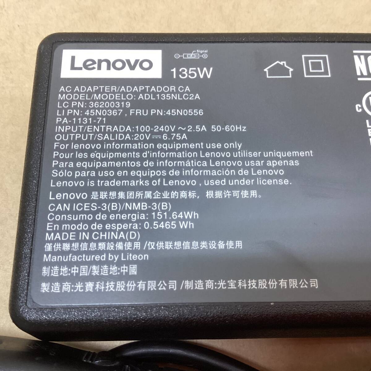 【2509241001】 Lenovo 純正 ACアダプター ADL135NLC2A 135W 20V 6.75A ThinkPad P1/X1 Extreme対応.