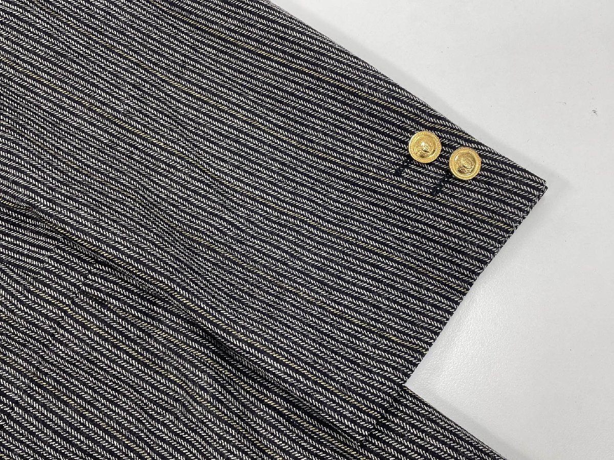 ・ジャケット・・・着丈(襟下から背中心で)約80センチ、身幅約59センチ、肩幅(直線で)約51センチ、袖丈約65センチ、ウエスト幅(第1ボタン付近で)約53センチ