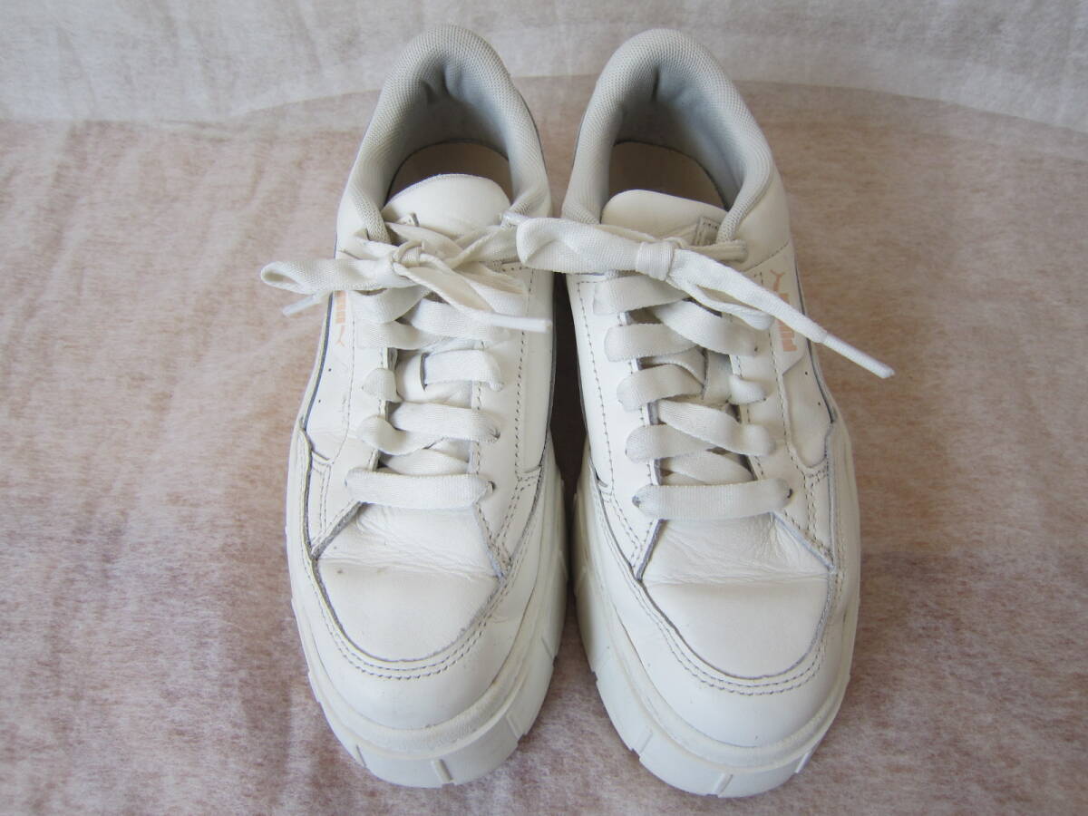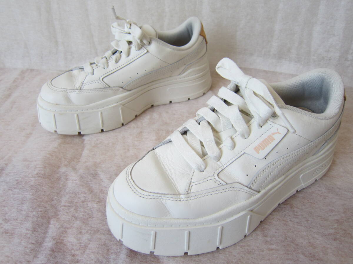 PUMA WOMENS MAYZE STACK SOFT(プーマ Wメイズ スタックソフト)[391083 07] オフホワイト レザー wm24㎝ 2024年製 厚底4㎝ ok2510B