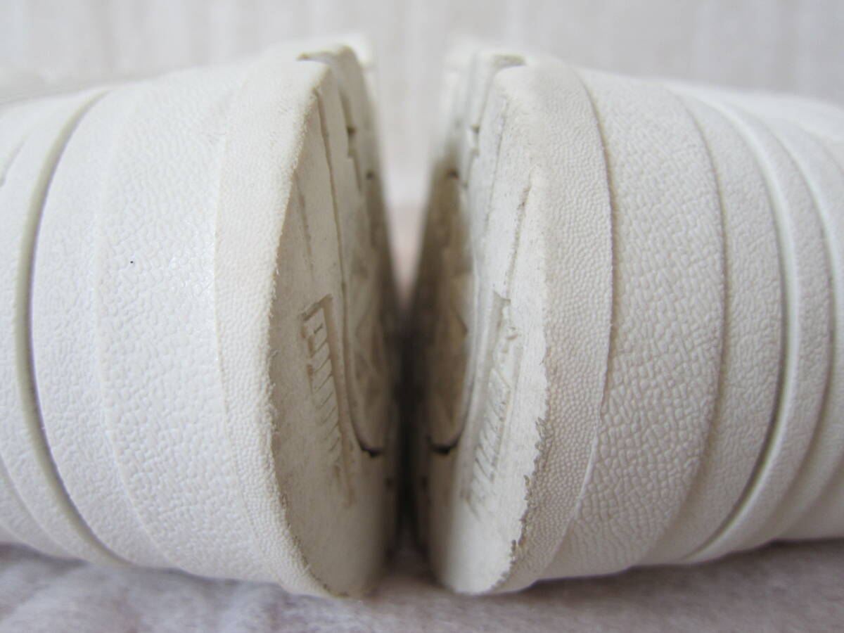 カカト上部に踏み付け、履きジワ、シミ、黄ばみ、変色、薄めの汚れ、足裏の擦り減り、