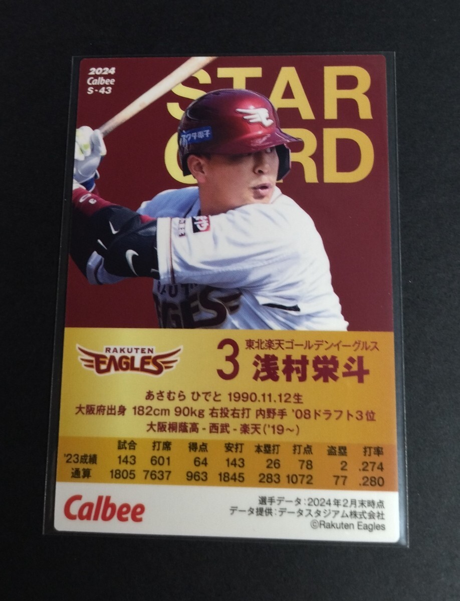 2024年カルビー 第2弾 浅村栄斗(楽天)金箔サイン入りスターカード。No,S-43。