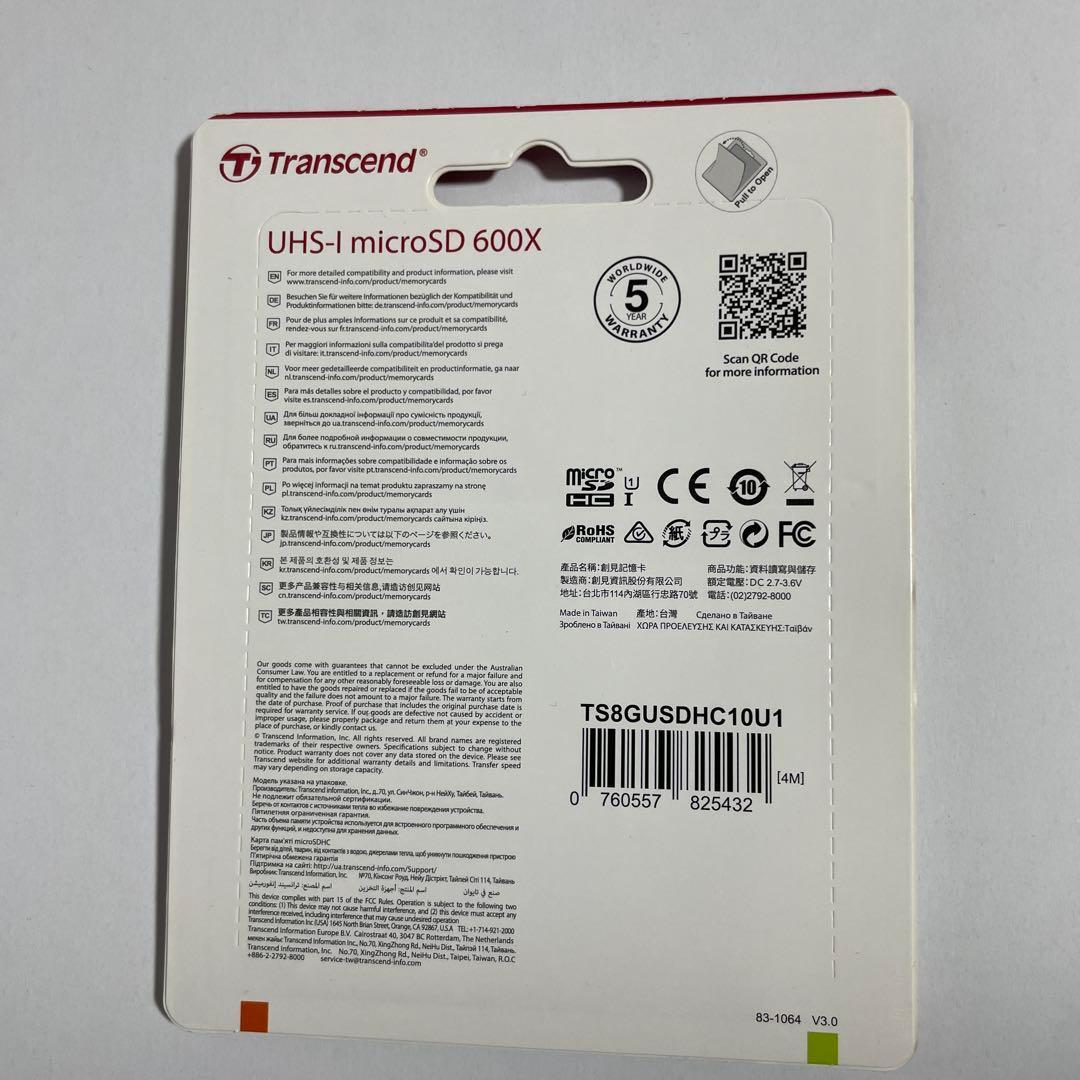 8GB トランセンド microSDHCカード Class10対応 SDカードアダプタ付き UHS-I 600倍速 MLCフラッシュメモリー Transcend TS8GUSDHC10U1