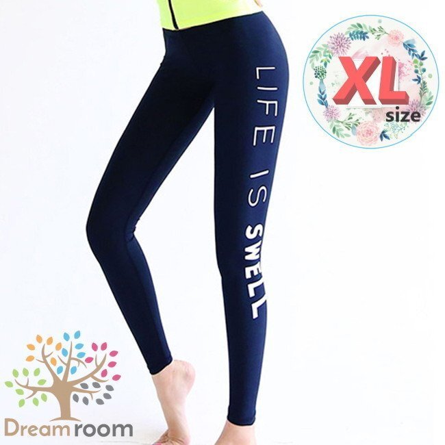 1スタ☆lady's スイムウェアー ラッシュガード ロングパンツ ロゴデザイン 【ネイビー XL】 K-246 水着 ボトム 水泳 競泳 レギンス