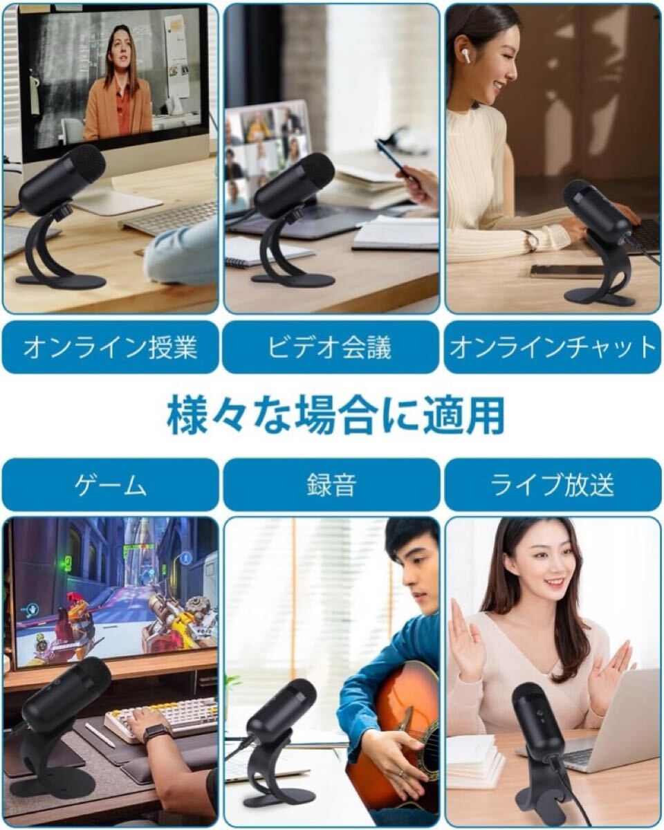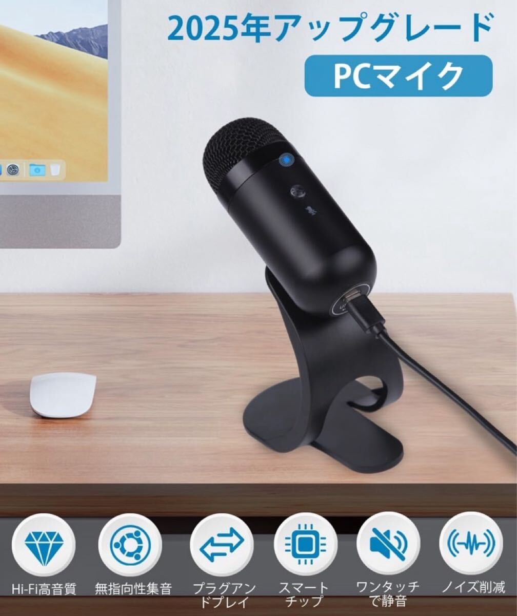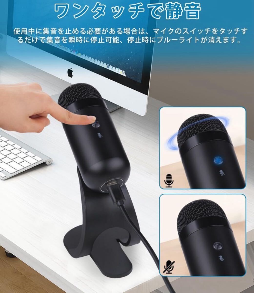 PCマイク usb スタンド 高感度 USB 卓上 無・全指向性 パソコンマイク ワンタッチミュート プラグアンドプレイ 360全方向集音 小型 有線タイプ ゲーミング・テレワーク・会議用・配信用 録音・ゲーム実況・ボイズチャット