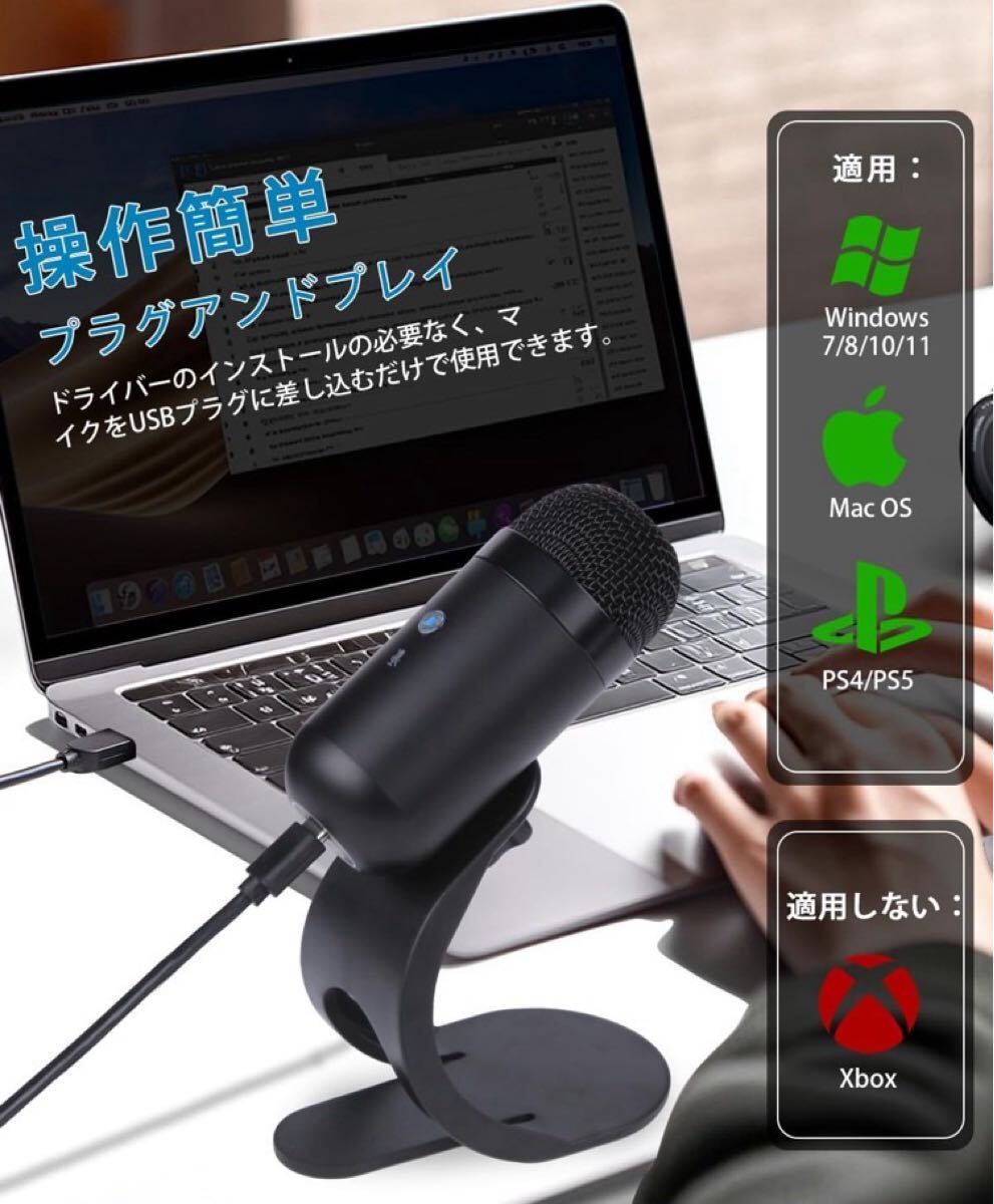 【USBプラグアンドプレイ&マルチシーン対応】このUSBマイクはドライバーやソフト不要のプラグアンドプレイ設計で、USBポートに接続するだけで即時使用可能。Windows/Mac両システムに対応し、録音・配信・ビデオ通話・音声入力など様々なシーンで活用できます。歌唱録音・オンライン会議・リモートワークにも最適で、SkypeやYouTubeコンテンツ制作、Facebookなど多様なソフトウェアとシームレスに連携。※本製品には電池は付属しておりません。