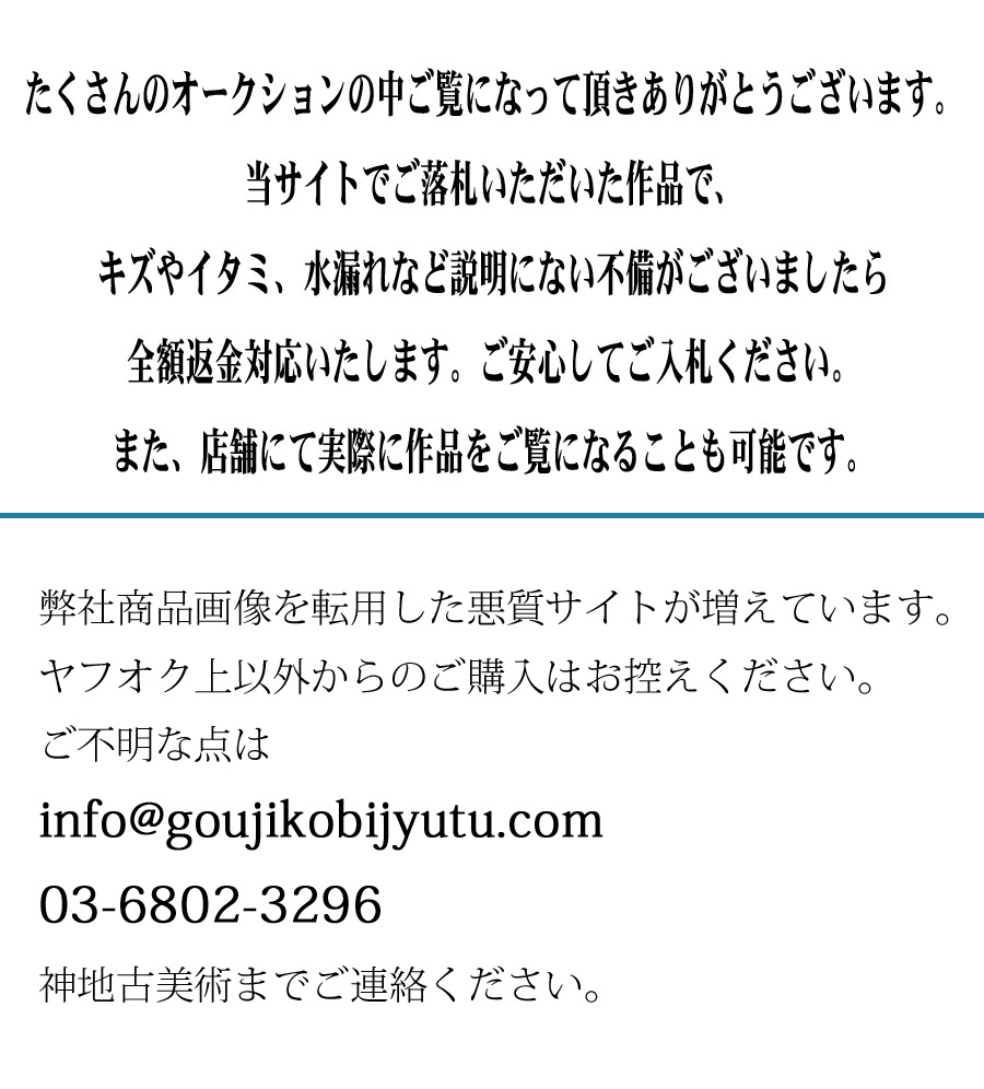 Ⅲ.一旦成功中标,您必须全额支付该拍品(成交价+消费税+银行转账费+日本邮费+代购费)。