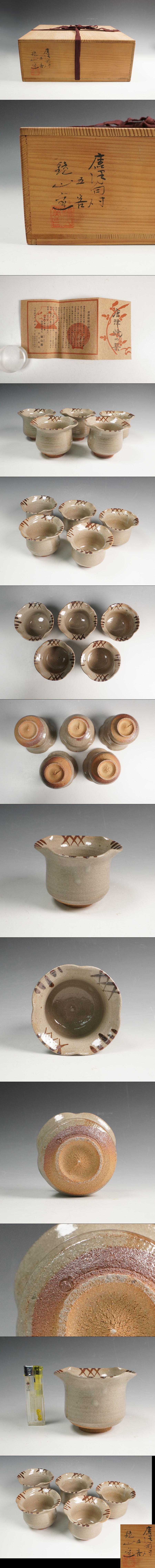 | 井上東也 作 鏡山窯 唐津向付 五客 共箱 保証品 | ||||