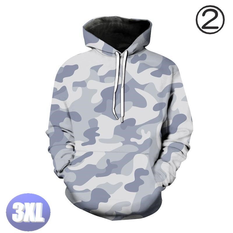 フード付き 迷彩パーカー カモフラ ホワイト 3XL トレーナー アウター 防寒 n720