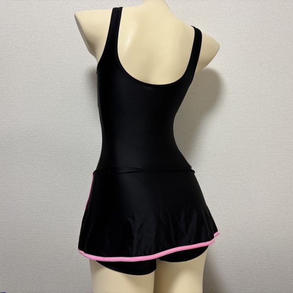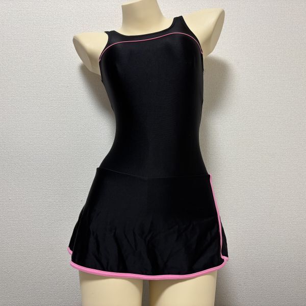 17グレイス女子競泳水着170(XLサイズ程度)★スカートタイプ・光沢黒ブラックピンク★大きいサイズ男性も