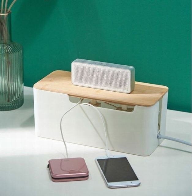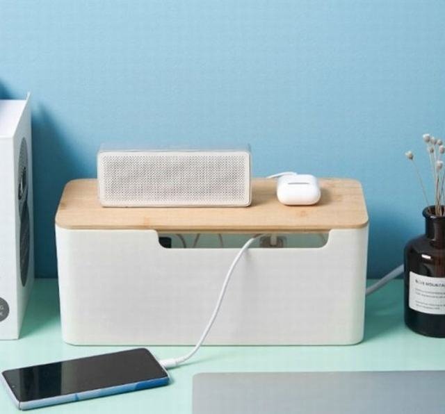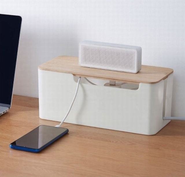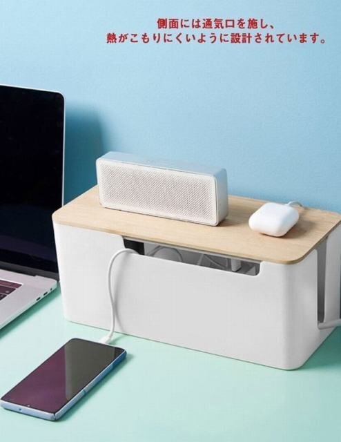 蓋付きでホコリが溜まりにくく、蓋の上に小物を置くこともできます。 無駄のないシンプルなデザインで、部屋に馴染みます。 シンプルながらスタイリッシュなケーブルボックス。 側面には通気口を施し、熱がこもりにくいように設計されています。