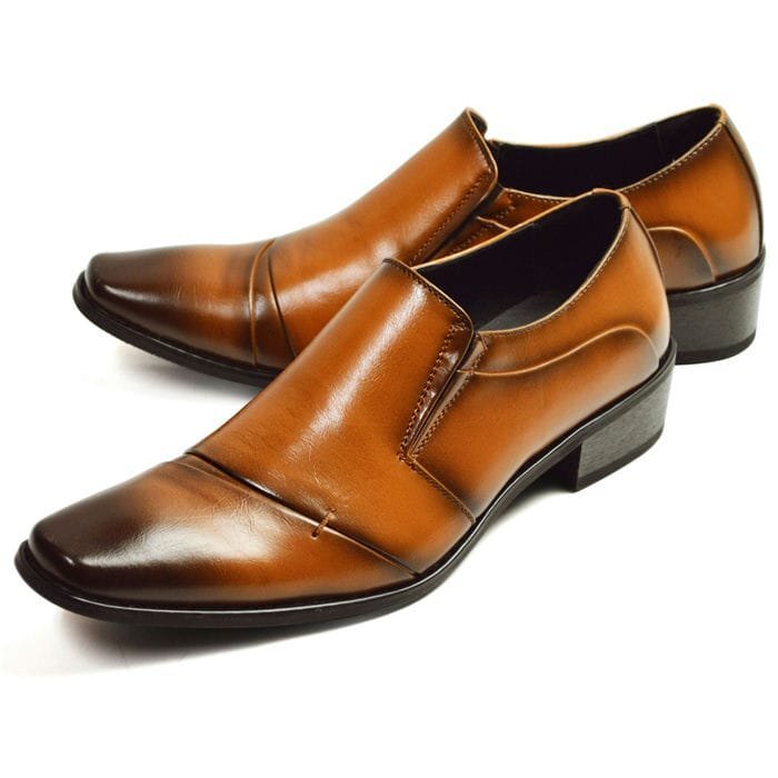 ビジネスシューズ スリッポン サイドゴア シンプル メンズ フォーマル 冠婚葬祭 スクエアトゥ 5cm 身長アップ 紳士靴 ze2011