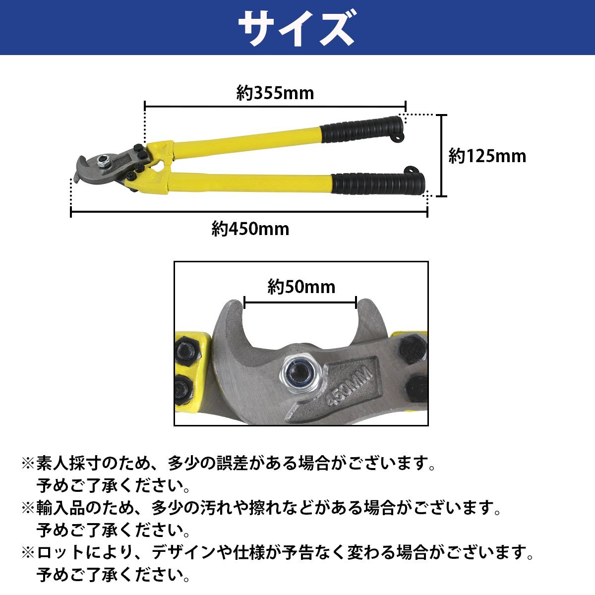 両刃式 ケーブルカッター 450mm/45cm ワイヤーカッター ロープ 番線カッター 切断50mm ケーブル 線 配線 電線 工事 整備