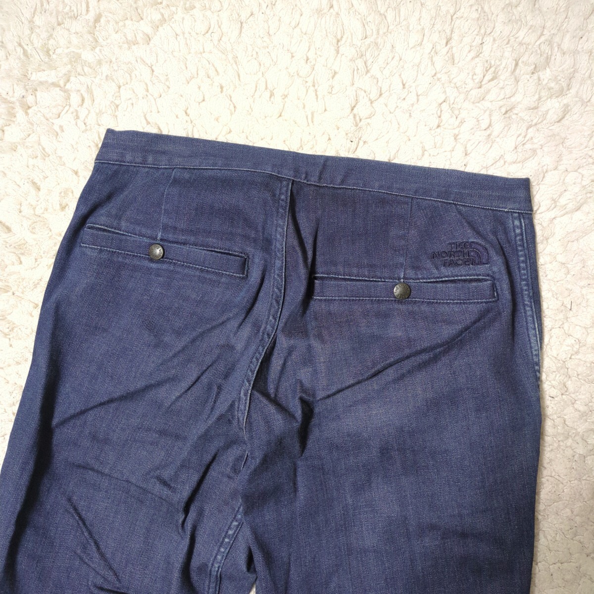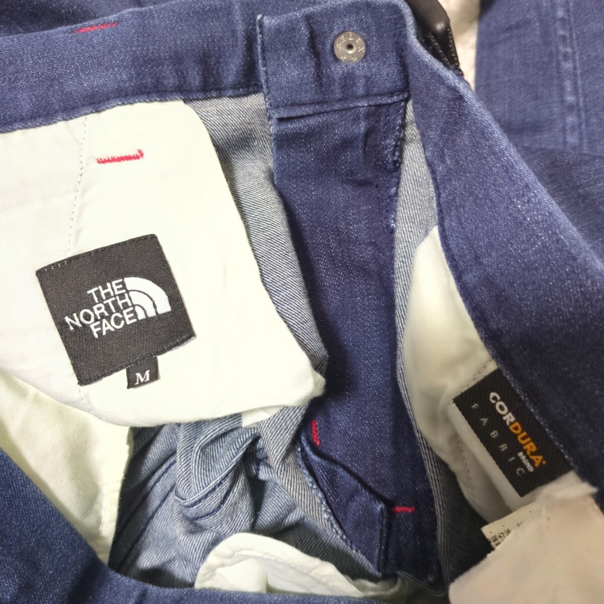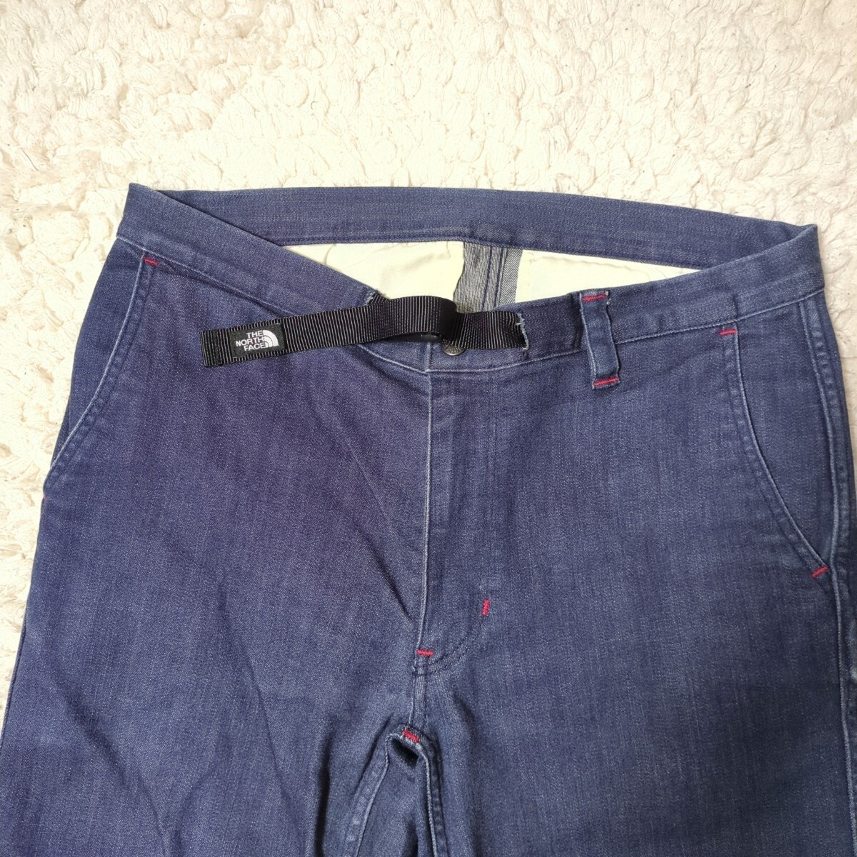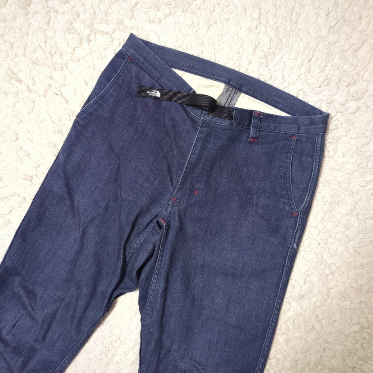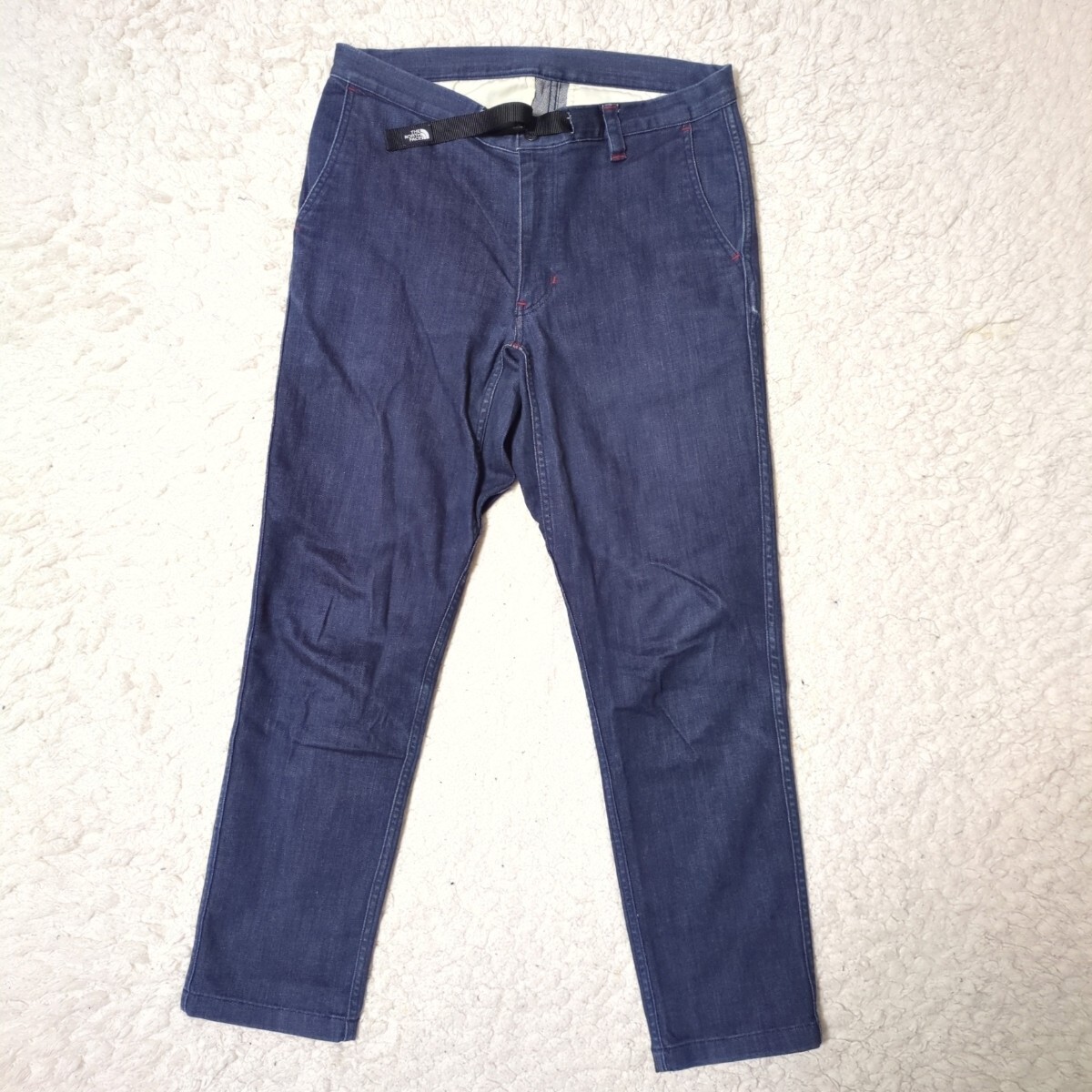 人気アウトドアブランド、ノースフェイスの風合いのよいコットンに、耐摩耗性が高いコーデュラ(R)を混紡したデニム地のクライミングパンツです。