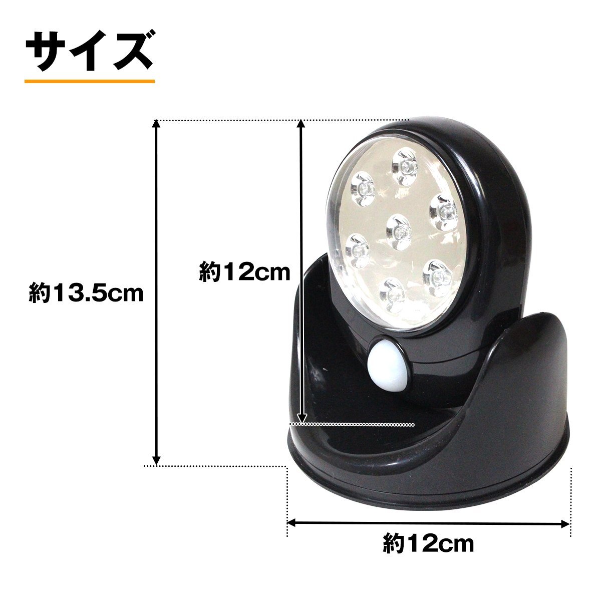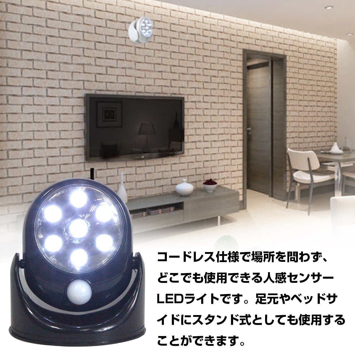 人感センサー LEDライト スタンド式 ブラック 小型 360度回転 電池式 壁掛け 自動点灯
