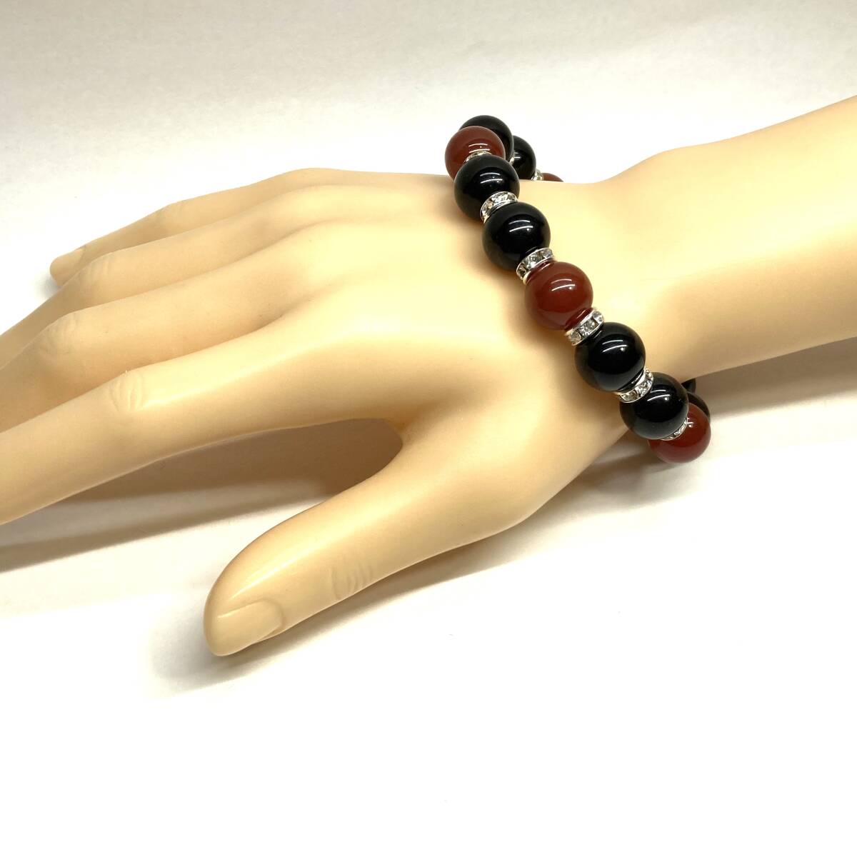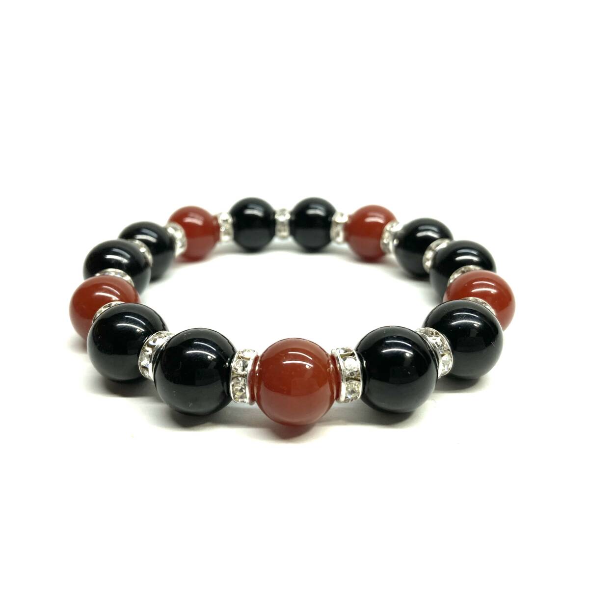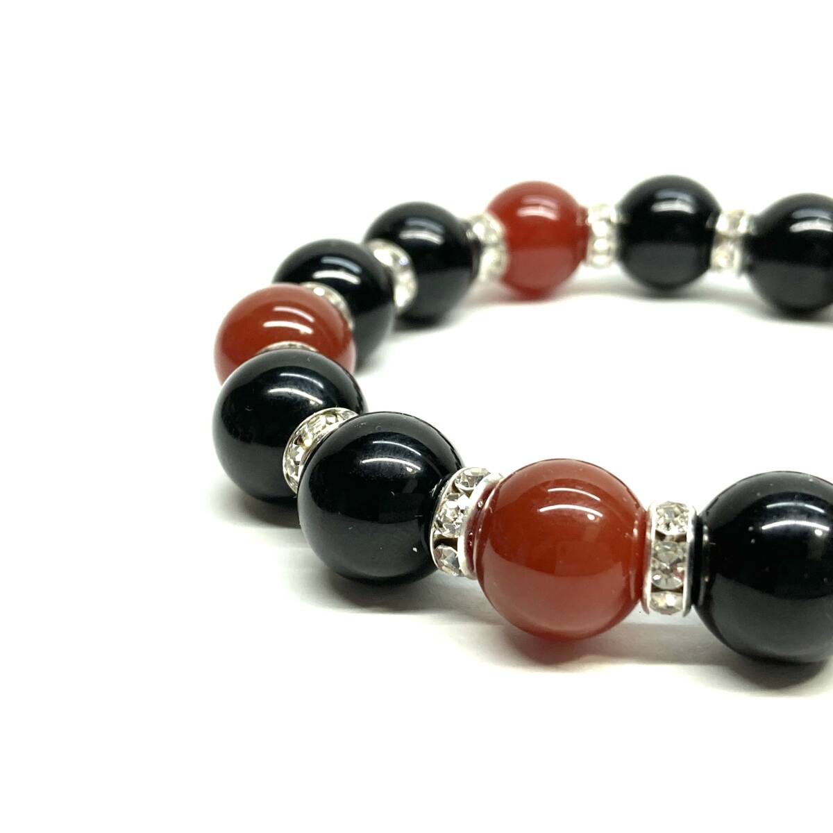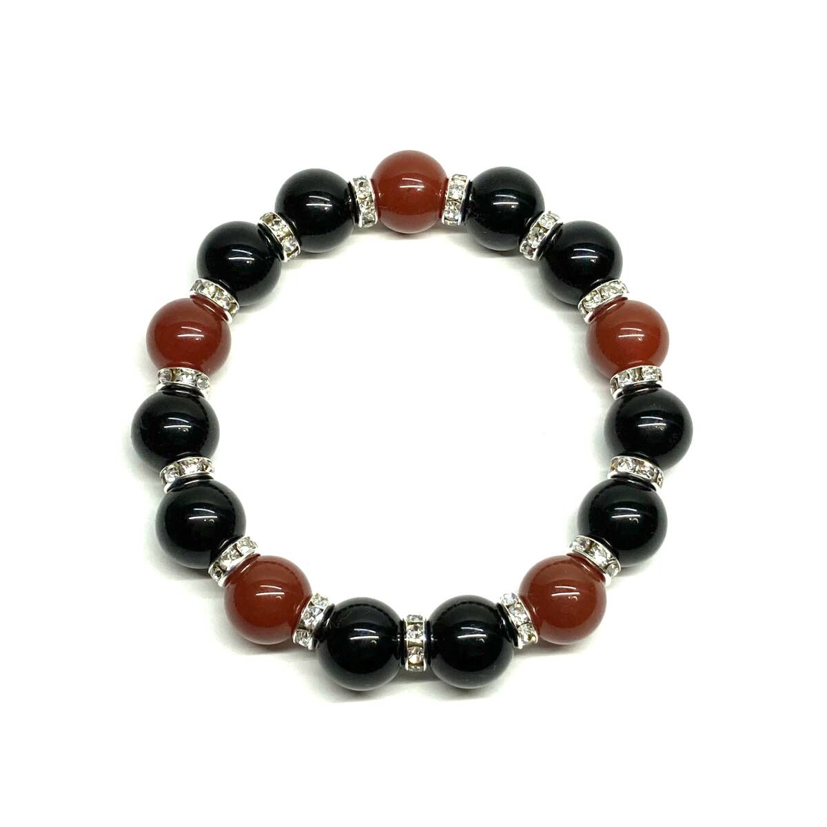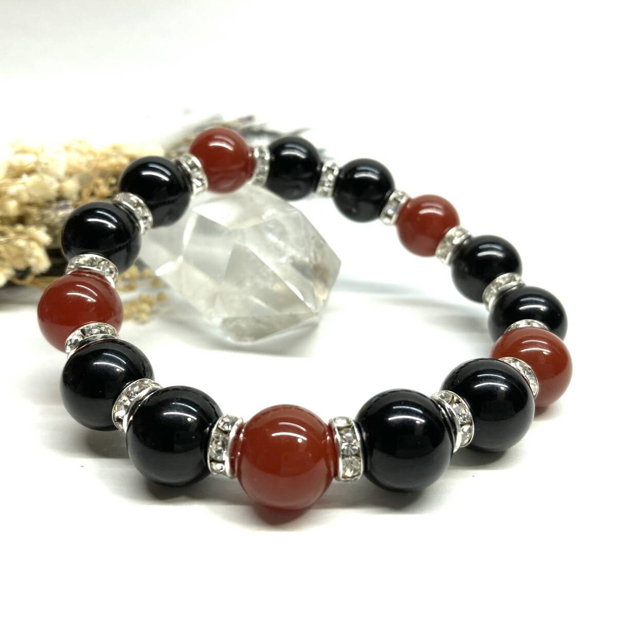 こちらは、モリオンと赤瑪瑙 を組み合わせたパワーストーンブレスレットです。間にはロンデルを挟み高級感あるデザインに仕上げております。程よくインパクトがある12mm玉を使用して内周約18cmです。(サイズ変更の場合は取引ナビにてご連絡をお願いします。) 数に限りがございますので気になる方はお早めにどうぞ。