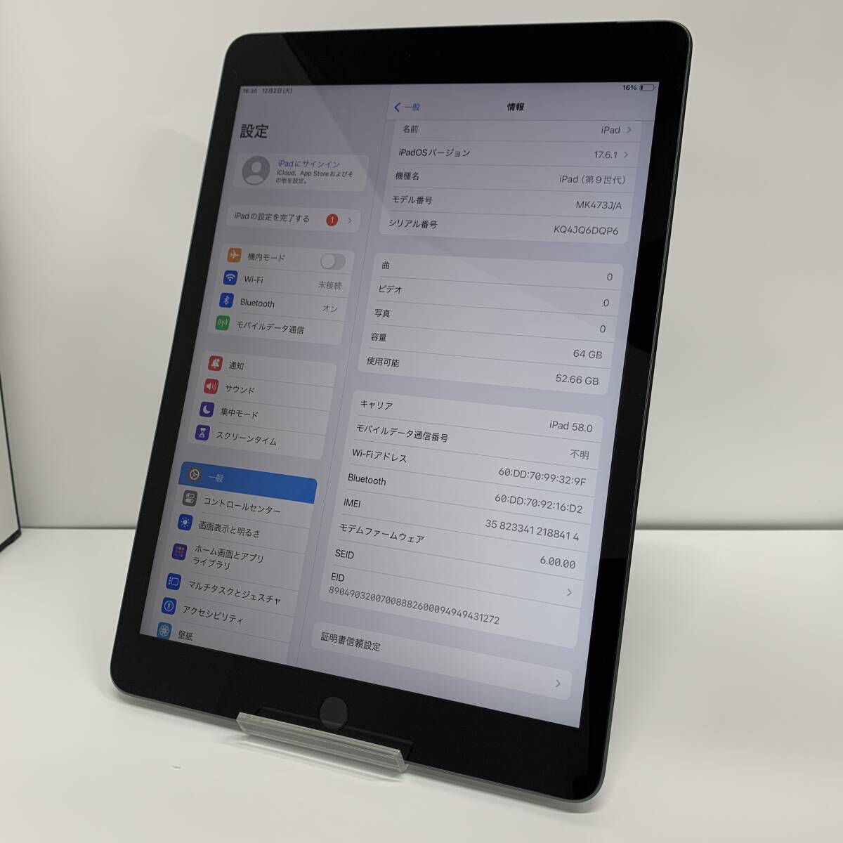 iPad9 Wi-Fi+Cellular MHGP3J/A 64GB スペースグレイ A2604 No.E9 【1円スタート!当日発送】