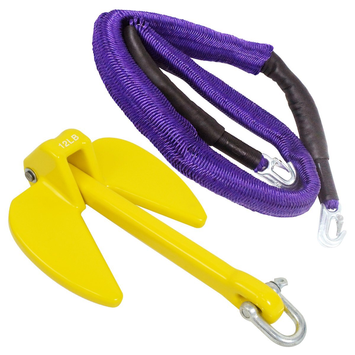 『伸縮ロープ/アンカーセット』ジェットスキー 爪型 アンカー 12LBS 5.5kg 黄色 6M フロート のびのび アンカー ロープ 紫