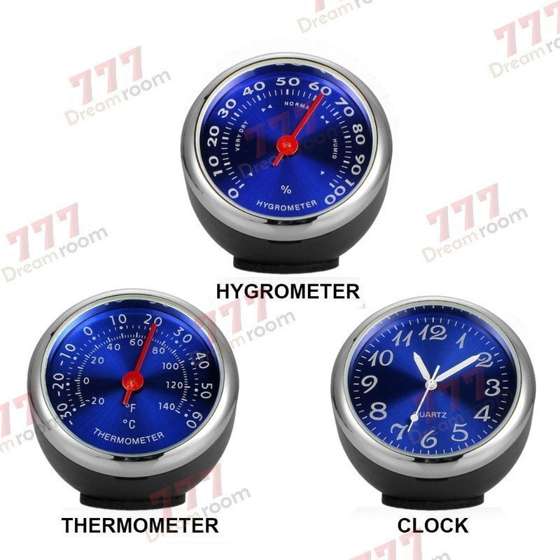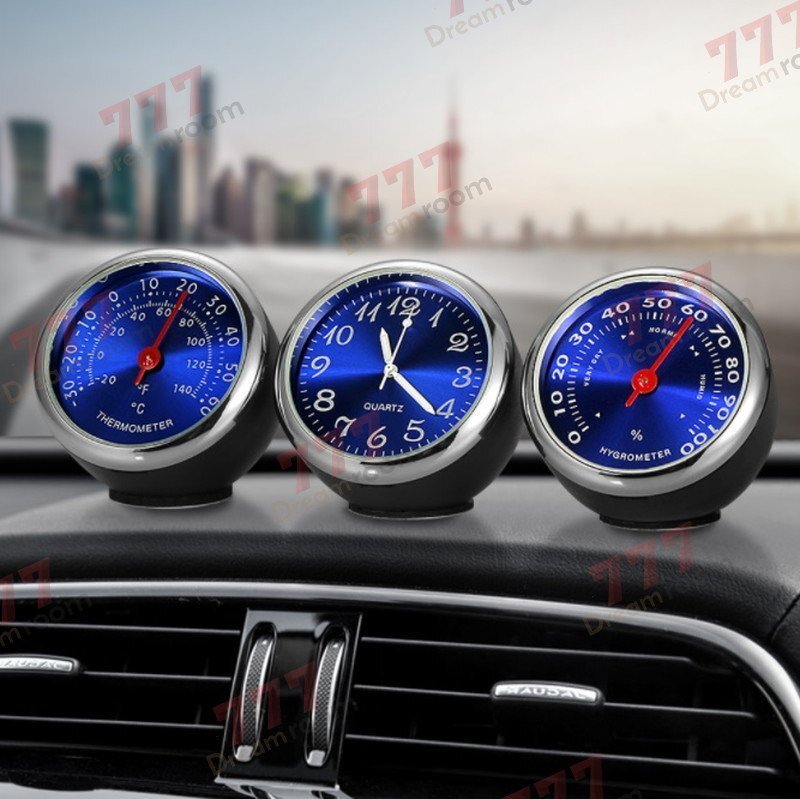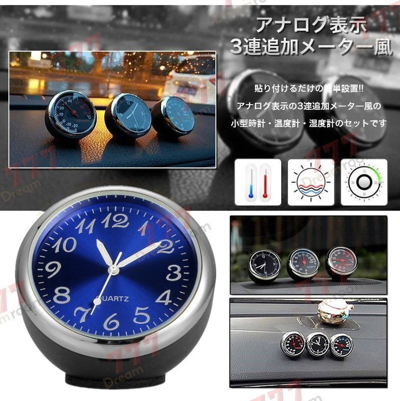 アナログ 3連メーター風 温度計 湿度計 時計 ブルー マルチ車載 アクセサリー ラグジュアリー 車 インテリア 装飾飾り 自動 車時計
