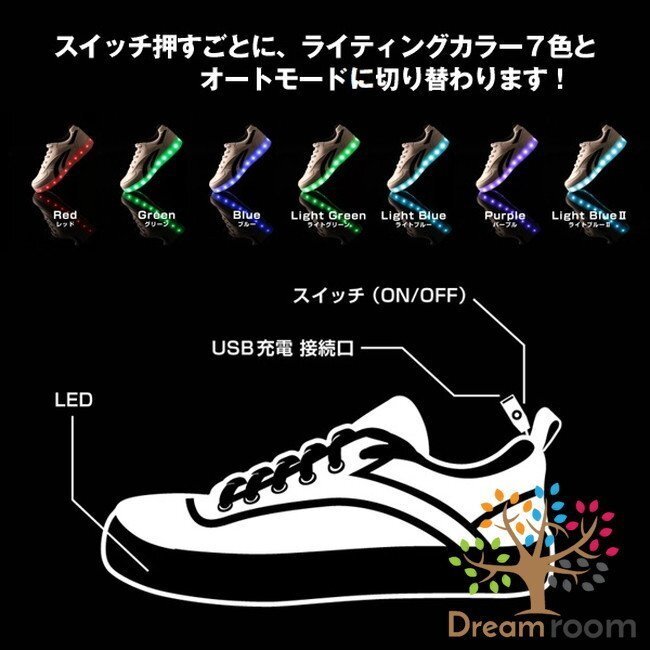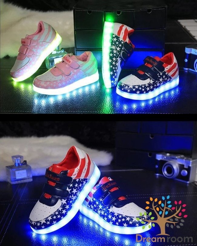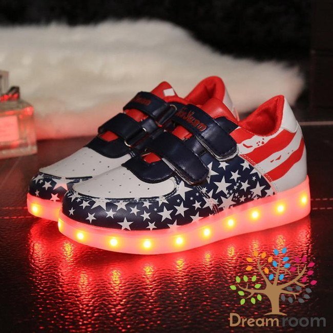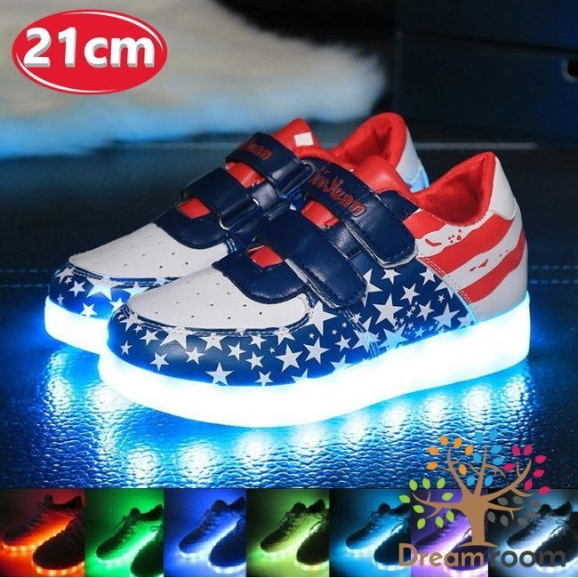 1スタ☆kids 7色に光る☆LED ライトアップ スニーカー 【アメリカン 21cm】 韓国子供服 キッズ シューズ 子供用 男女