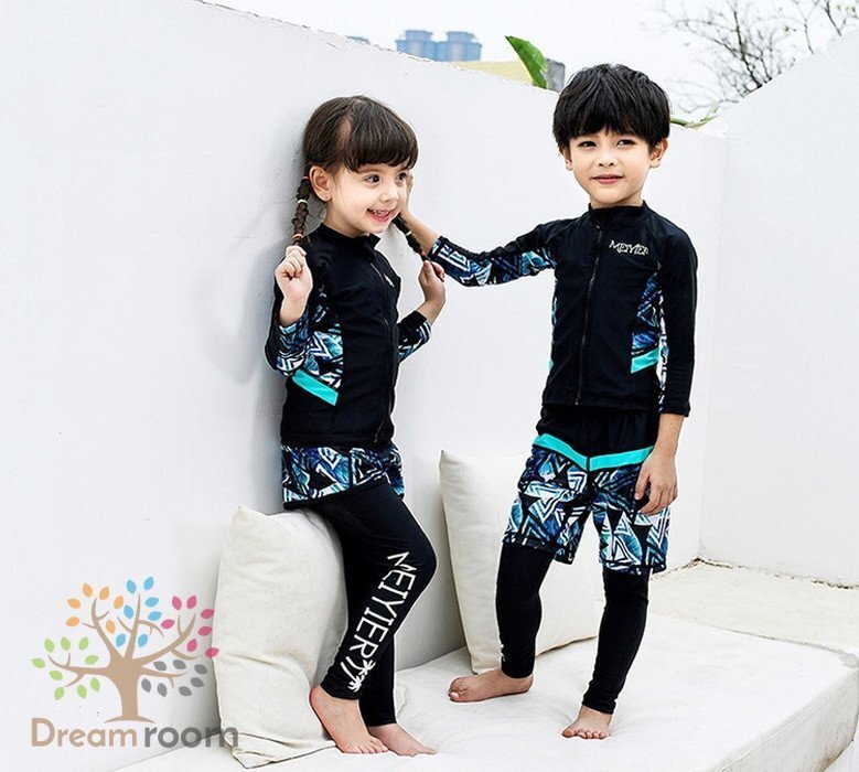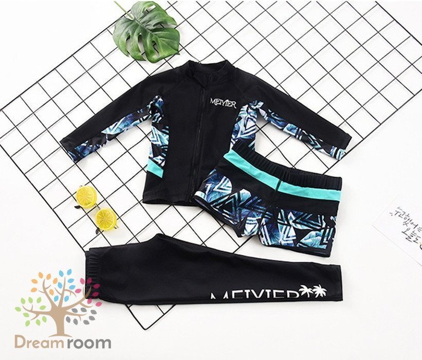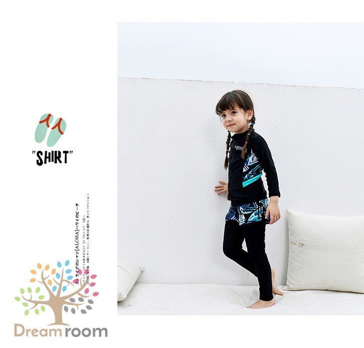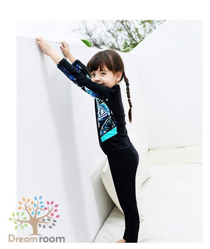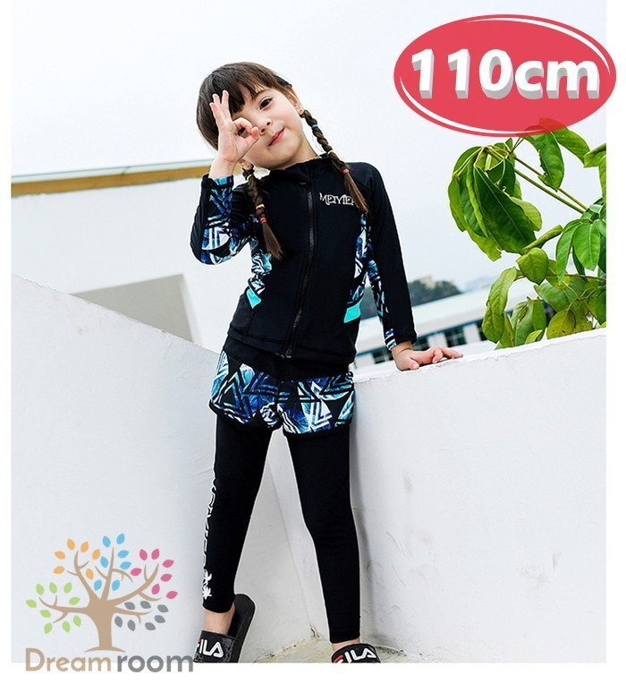 kids 3点セット エスニック柄パーカータイプ ラッシュガード+海水パンツ+レギンス セットアップ女の子 【110cm】 K-236 スイムウェアー