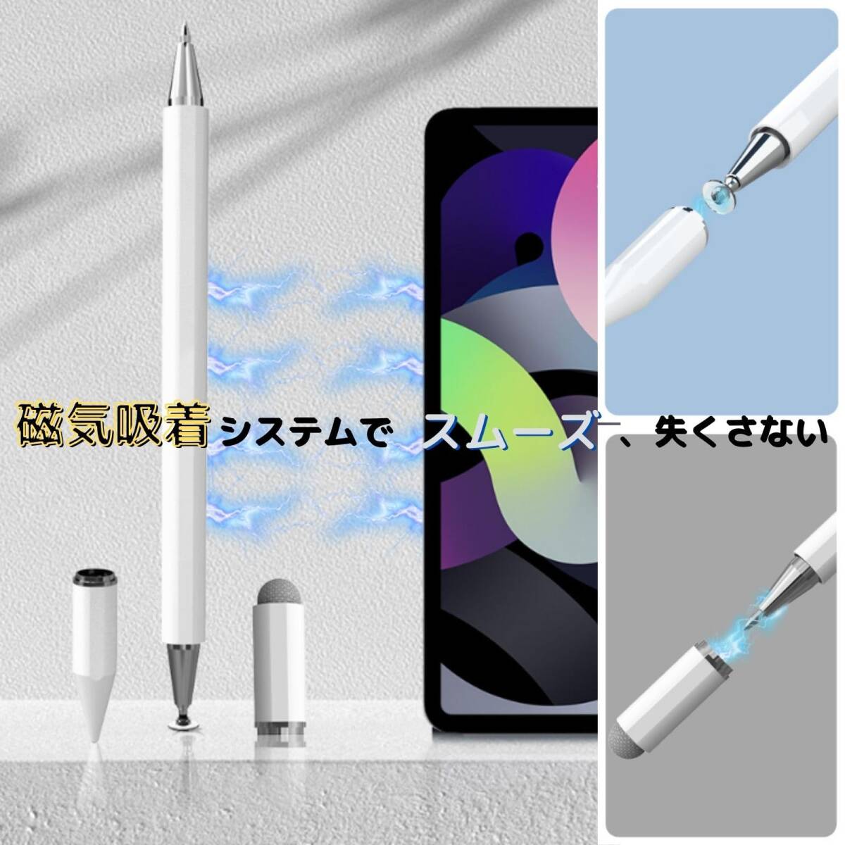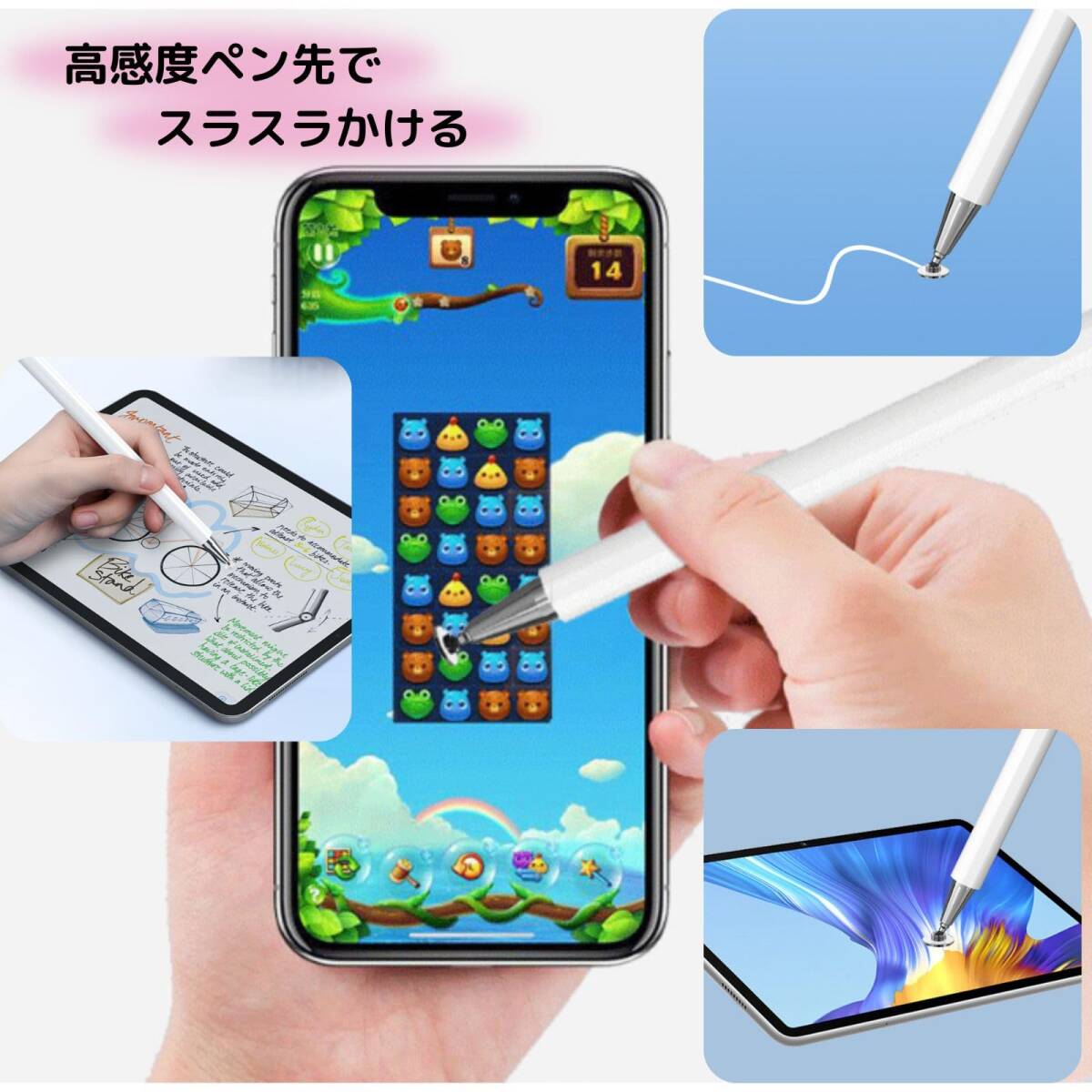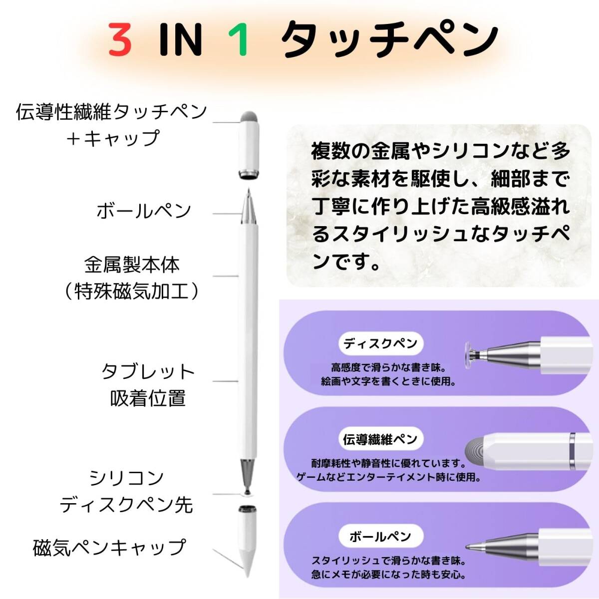 新登場 3WAYタッチペン スマホ・タブレット用 電子ペン デジタルペン スマートフォン タブレット 透明 ディスク 導電繊維 平型 山型 マグネットキャップ付き 充電不要 画面を傷つけにくい お絵描き イラスト ゲーム スマホ操作 メモ 仕事 【約長さ16.3×径1cm】 (白)