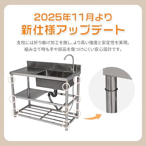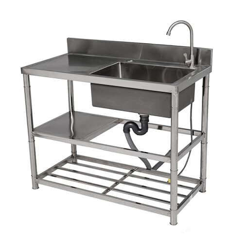 Donext 流し台 ステンレス製 蛇口水栓付き 蛇口左右に付けれる 幅100x奥行50x高さ90.5cm 屋外 簡易式 キッチR
