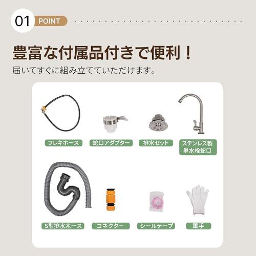 【商品仕様】◆全体サイズ:幅100×奥行50×高さ90.5cm ◆槽サイズ:幅50×奥行34.5×高さ19cm ◆梱包サイズ:幅105×奥行55×高さ36cm ◆本体重量:約20kg ◆梱包重量:約22kg ◆付属物:フレキホース、蛇口アダプター 、排水セット、ステンレス製水栓蛇口、S型排水木一ス、コネクター、シールテープ、軍手。