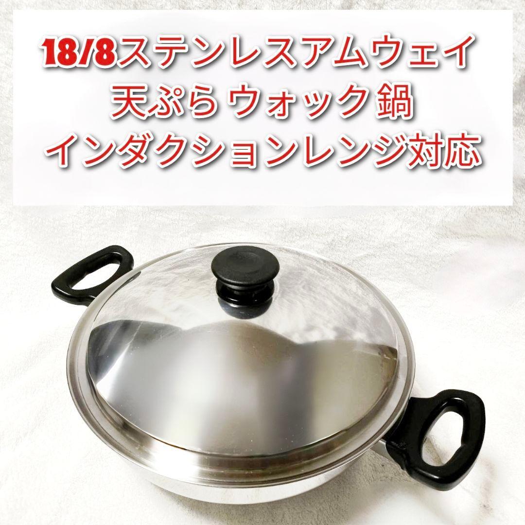 18/8ステンレス アムウェイ Amway 天ぷら ウォック 鍋 網なし@